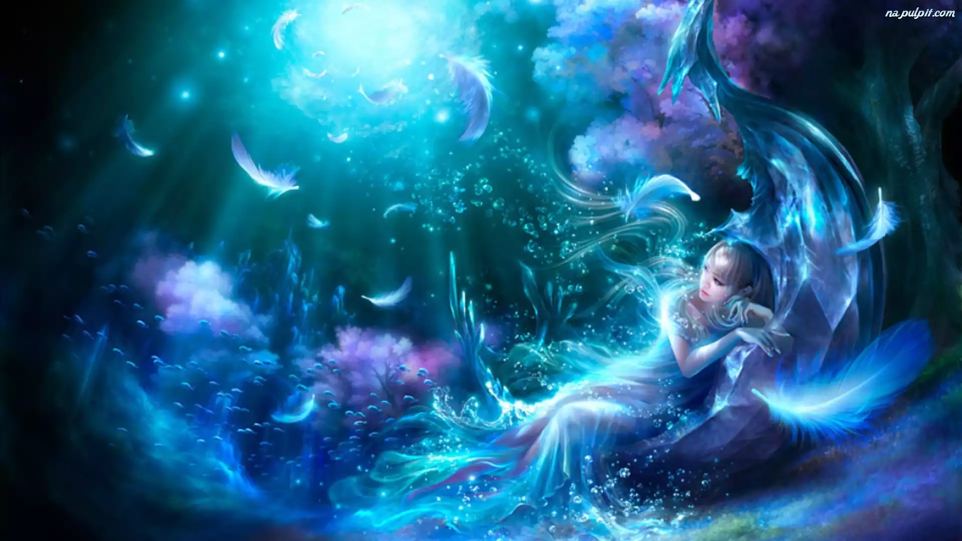 Pióra, Morskie, Dziewczyna, Dno Na Pulpit