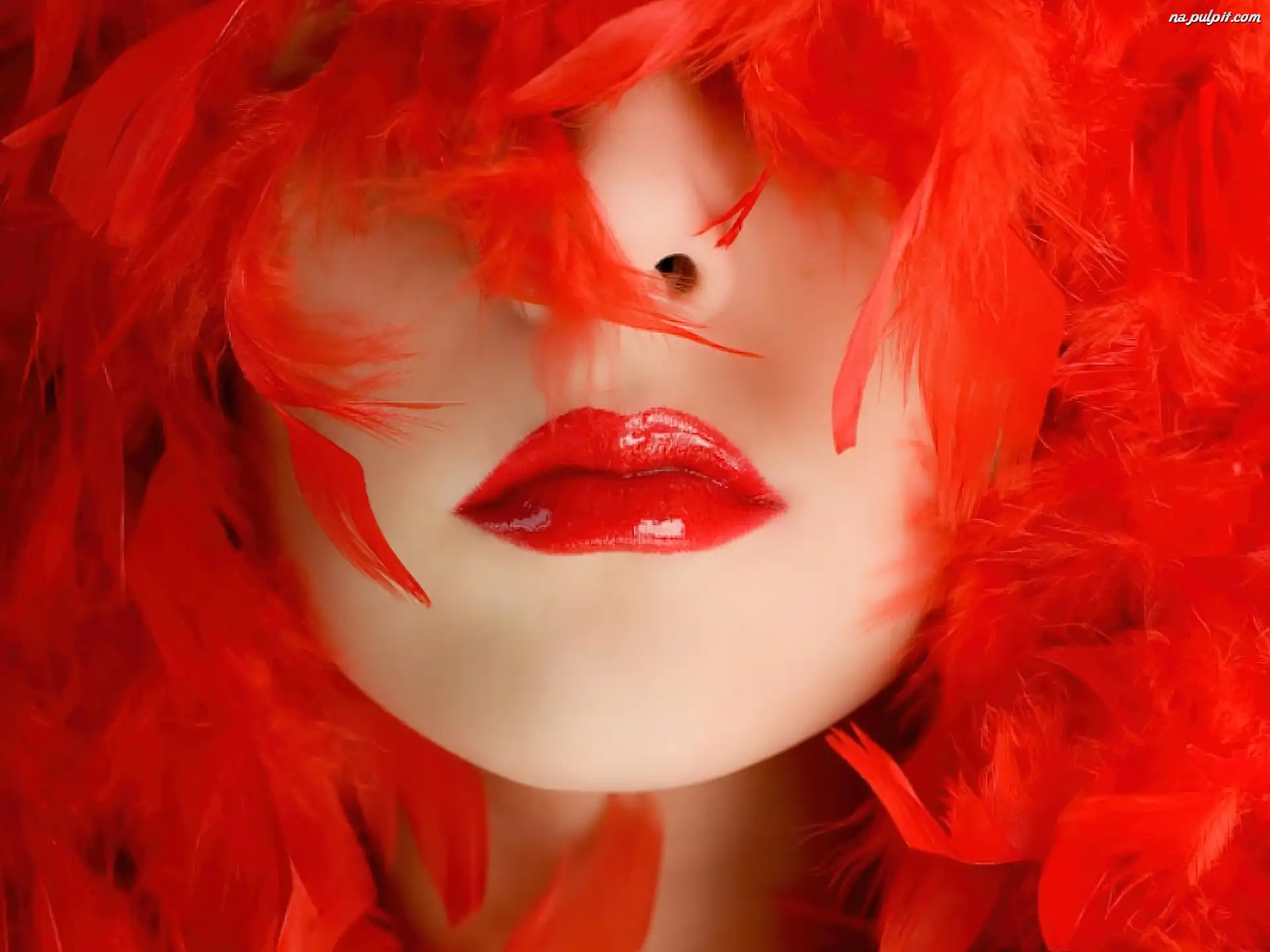 Pióra, Czerwone, Kobieta, Usta