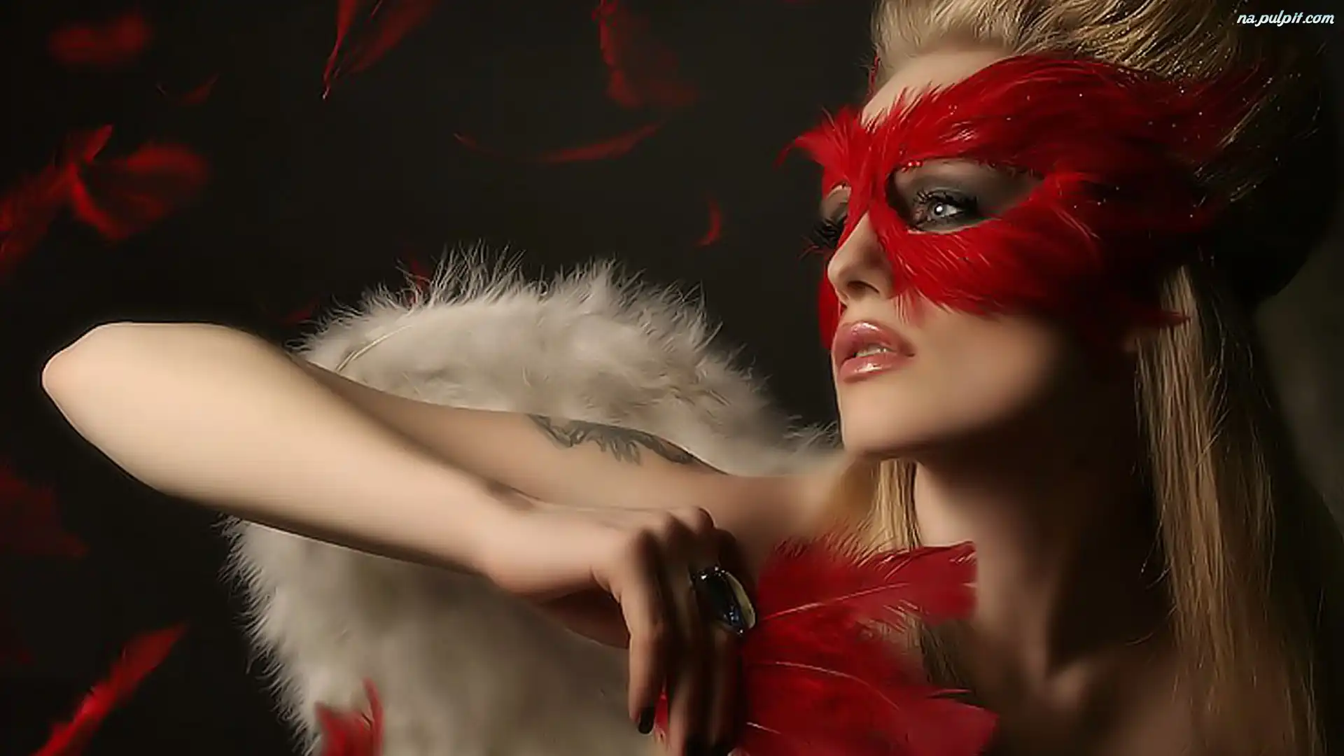 Pióra, Maska, Kobieta, Czerwone Na Pulpit