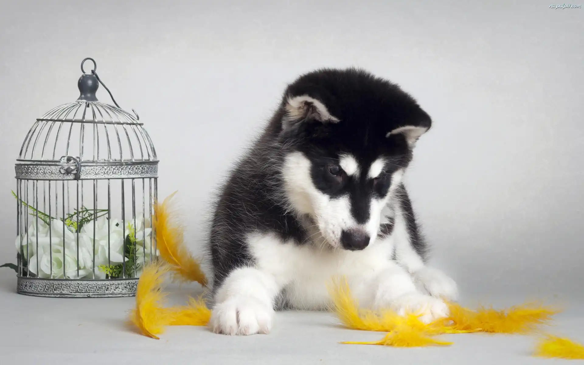 Piórka, Siberian husky, Szczeniak, Klatka Na Pulpit