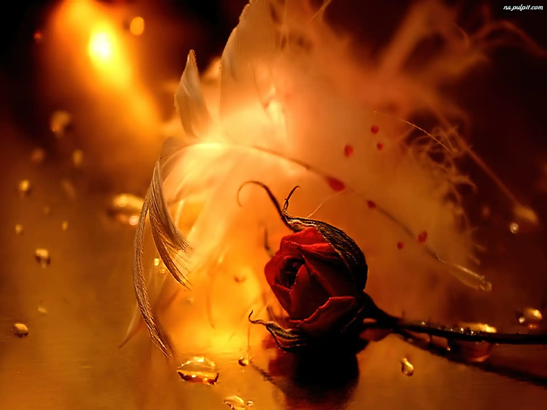 Piórko, Krople, Róża, Czerwona, Wody Na Pulpit