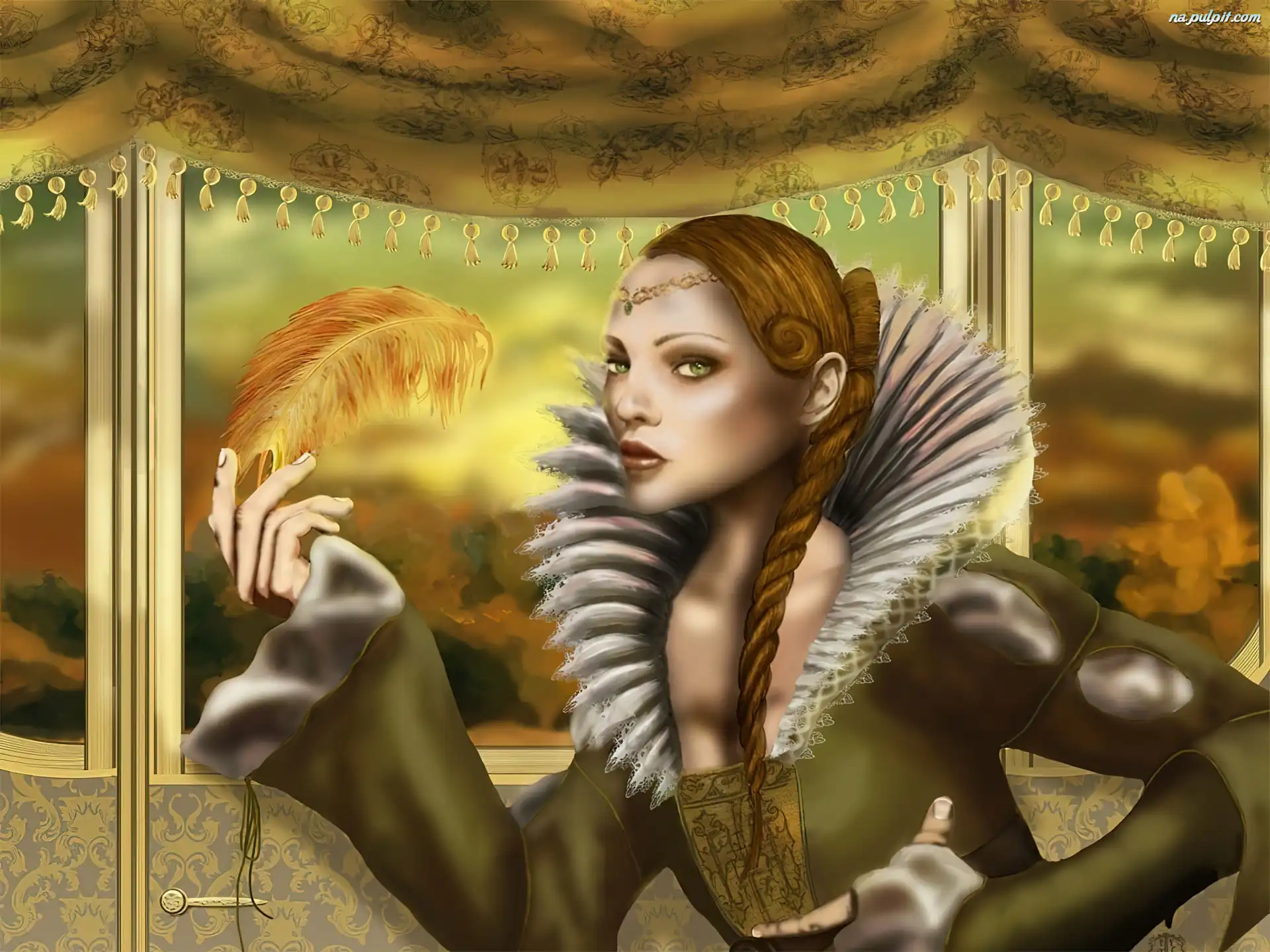 Piórko, Zielone, Kobieta, Oczy Na Pulpit