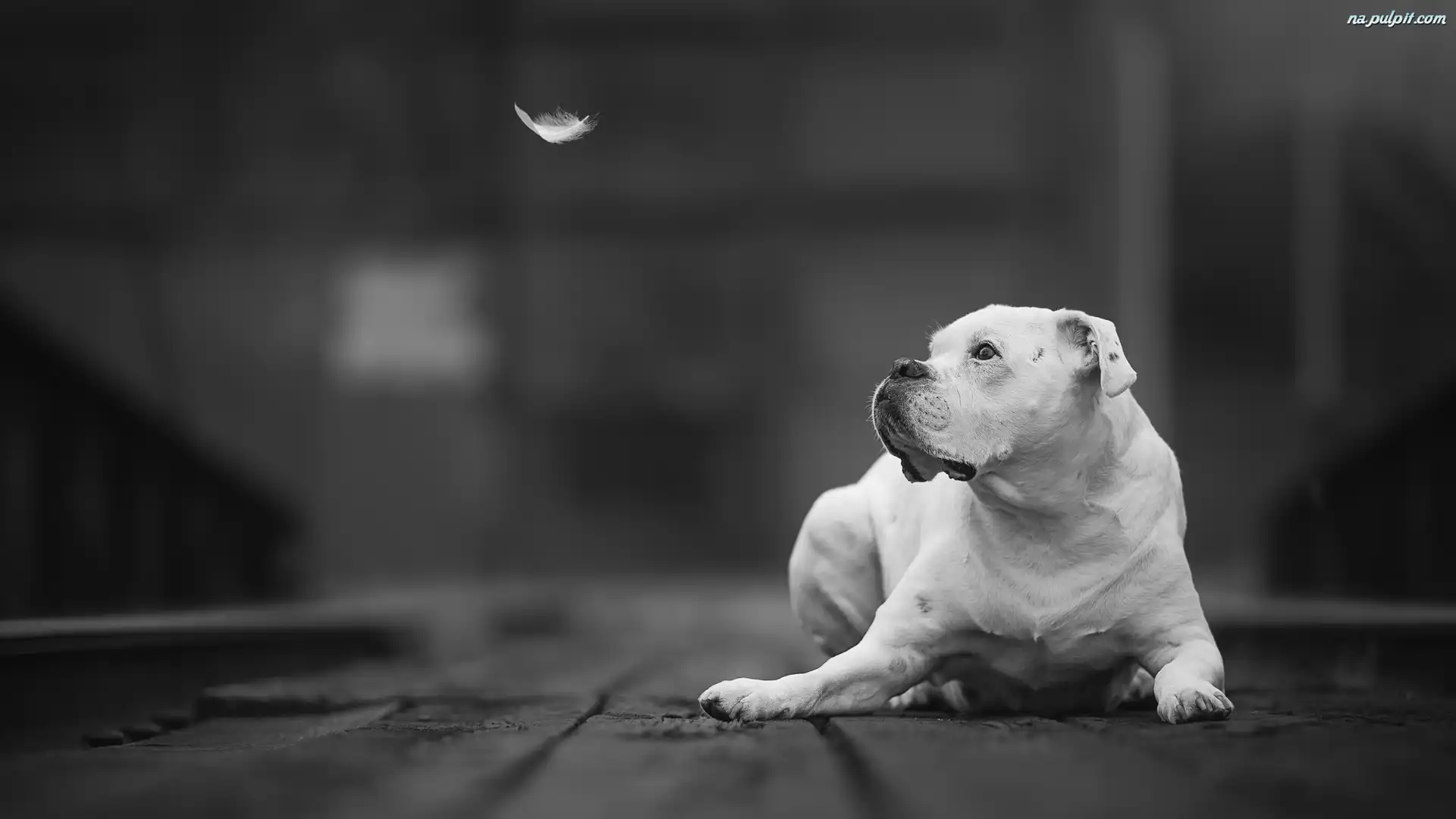 Piórko, Biały, Pies, Bokser Na Pulpit