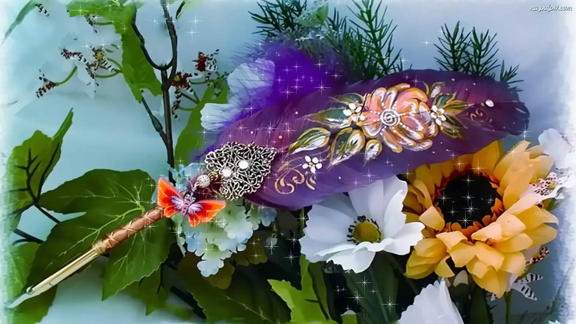 Kwiaty, Pióro, Motylek Na Pulpit