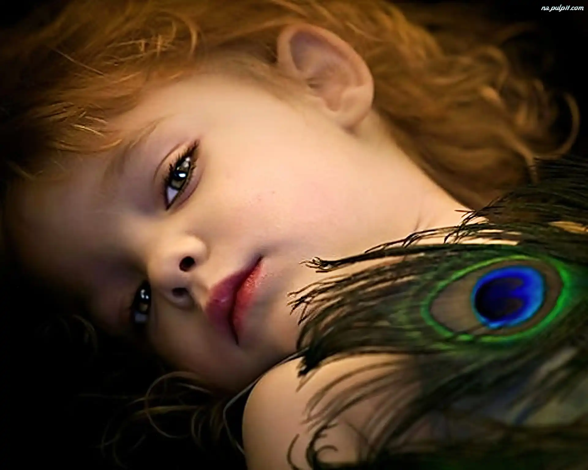 Pióro, Dziewczynka, Mała, Pawie Na Pulpit