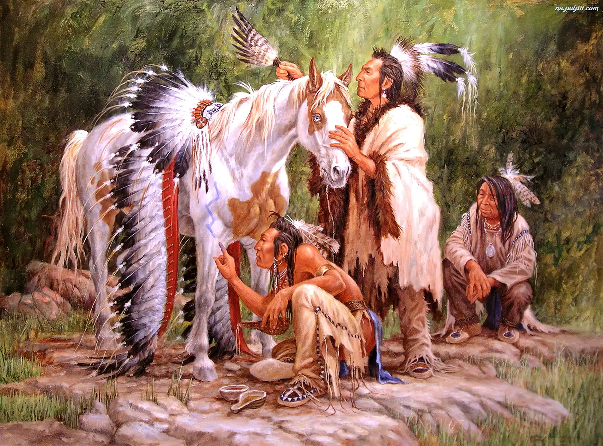Pióropusz, Indianie, Larry Fanning, Obraz, Koń Na Pulpit