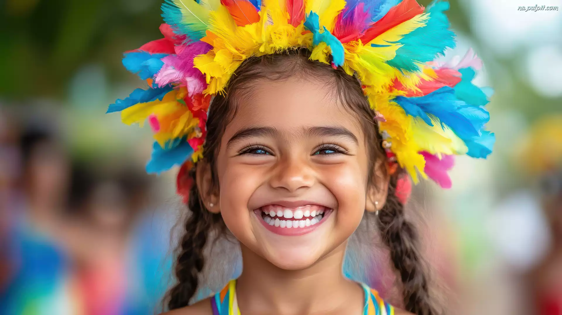 Uśmiechnięta, Dziewczynka, Warkocze, Pióropusz