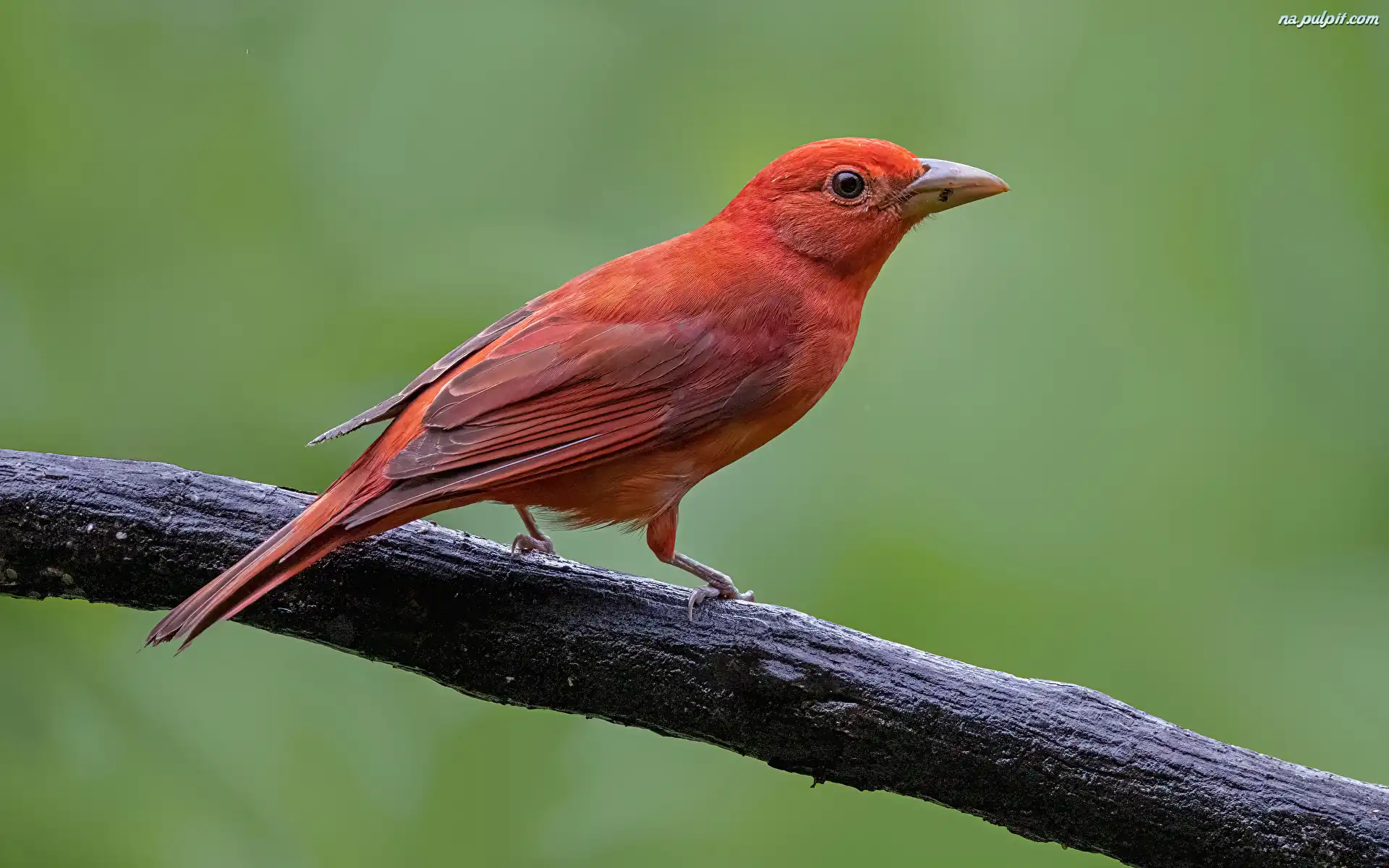 Ptak, Piranga pąsowa, Zbliżenie, Gałąź Na Pulpit