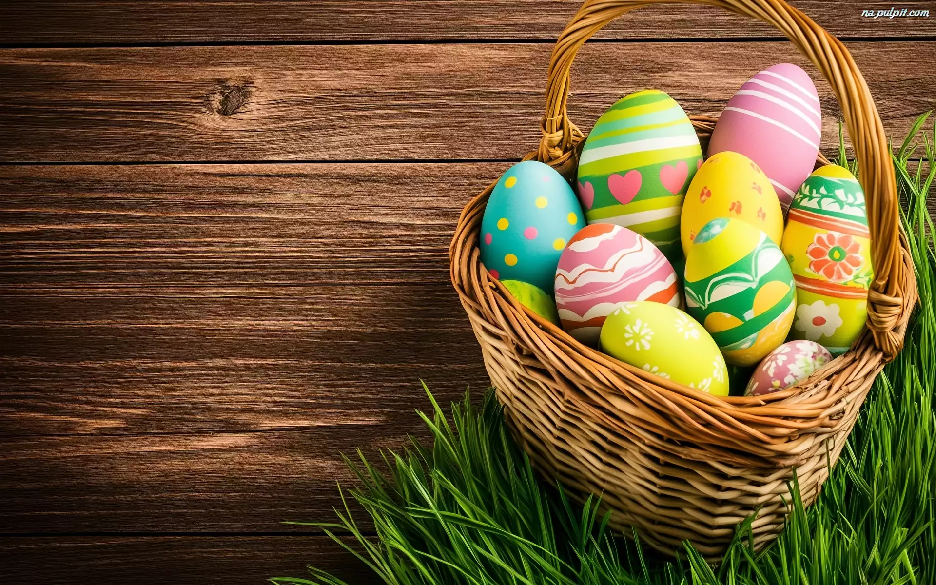Trawa, Wielkanoc, Kolorowe, Pisanki, Koszyk, Deski Na Pulpit