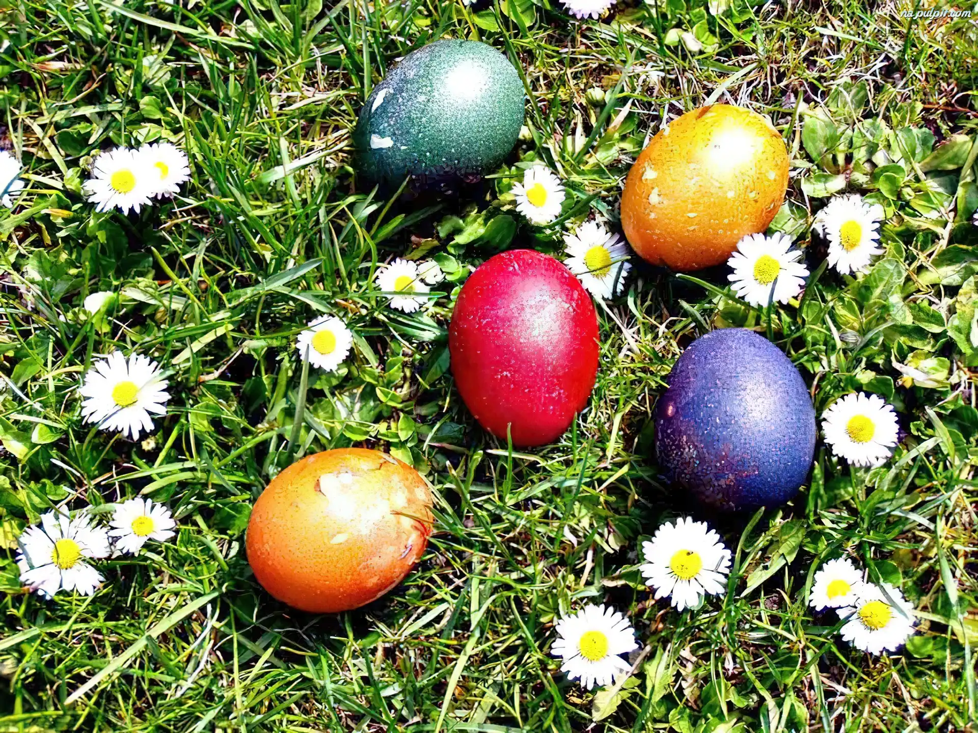 kwiatki, pisanki, trawa Na Pulpit