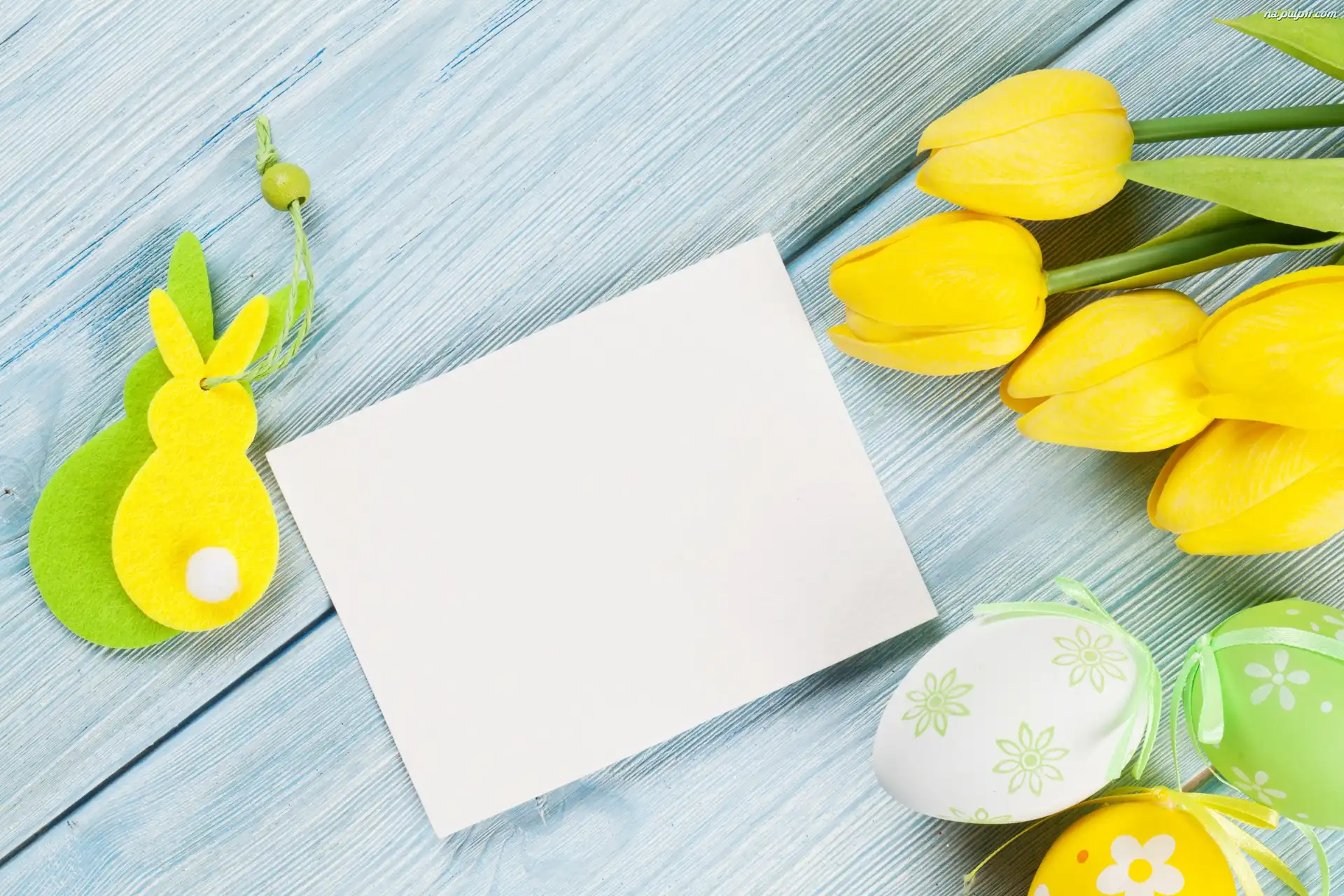 Żółte, Wielkanoc, Filcowe, Tulipany, Kartka, Zawieszki, Kompozycja, Pisanki