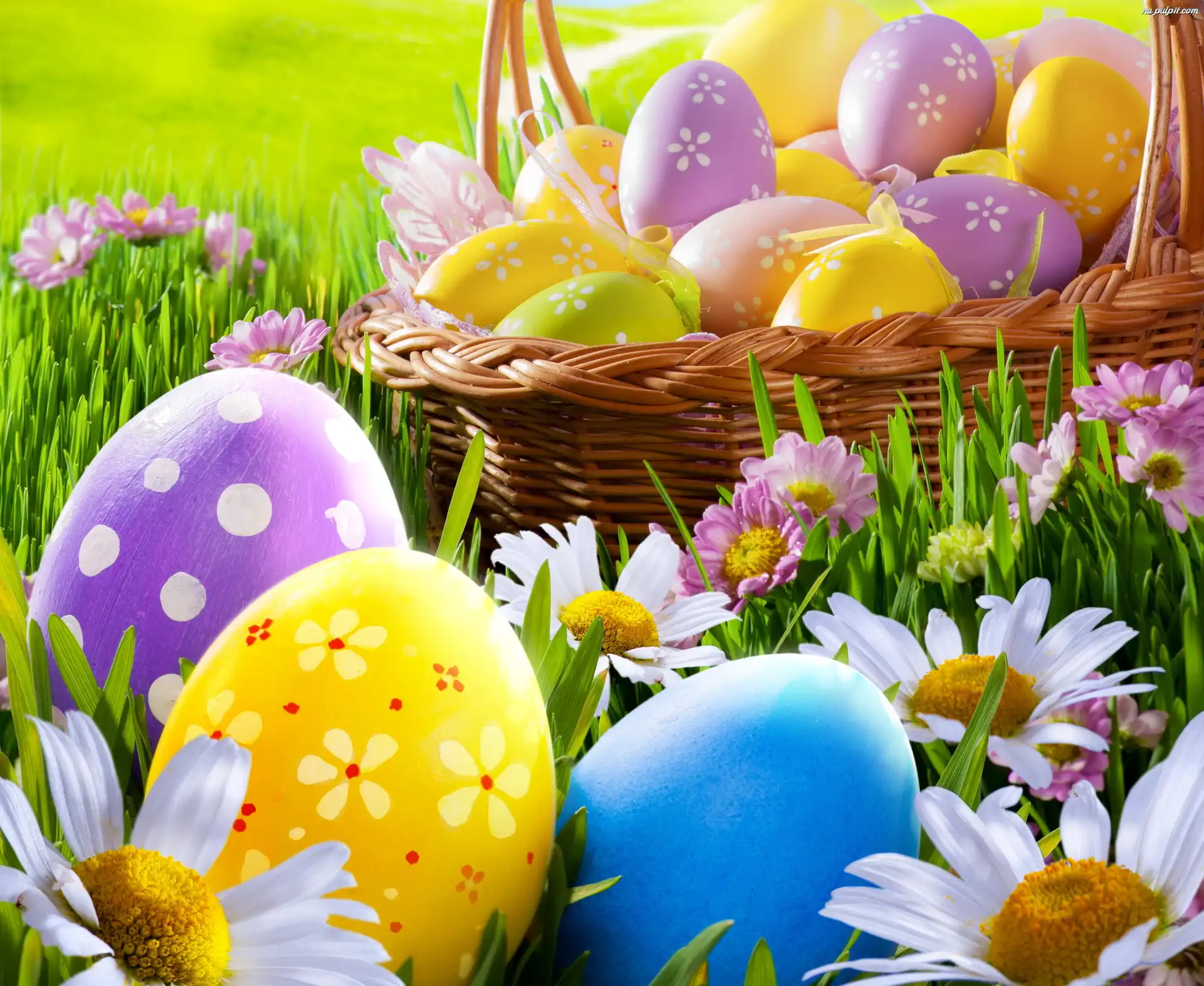 Pisanki, Koszyk, Wielkanocny, Kwiaty
