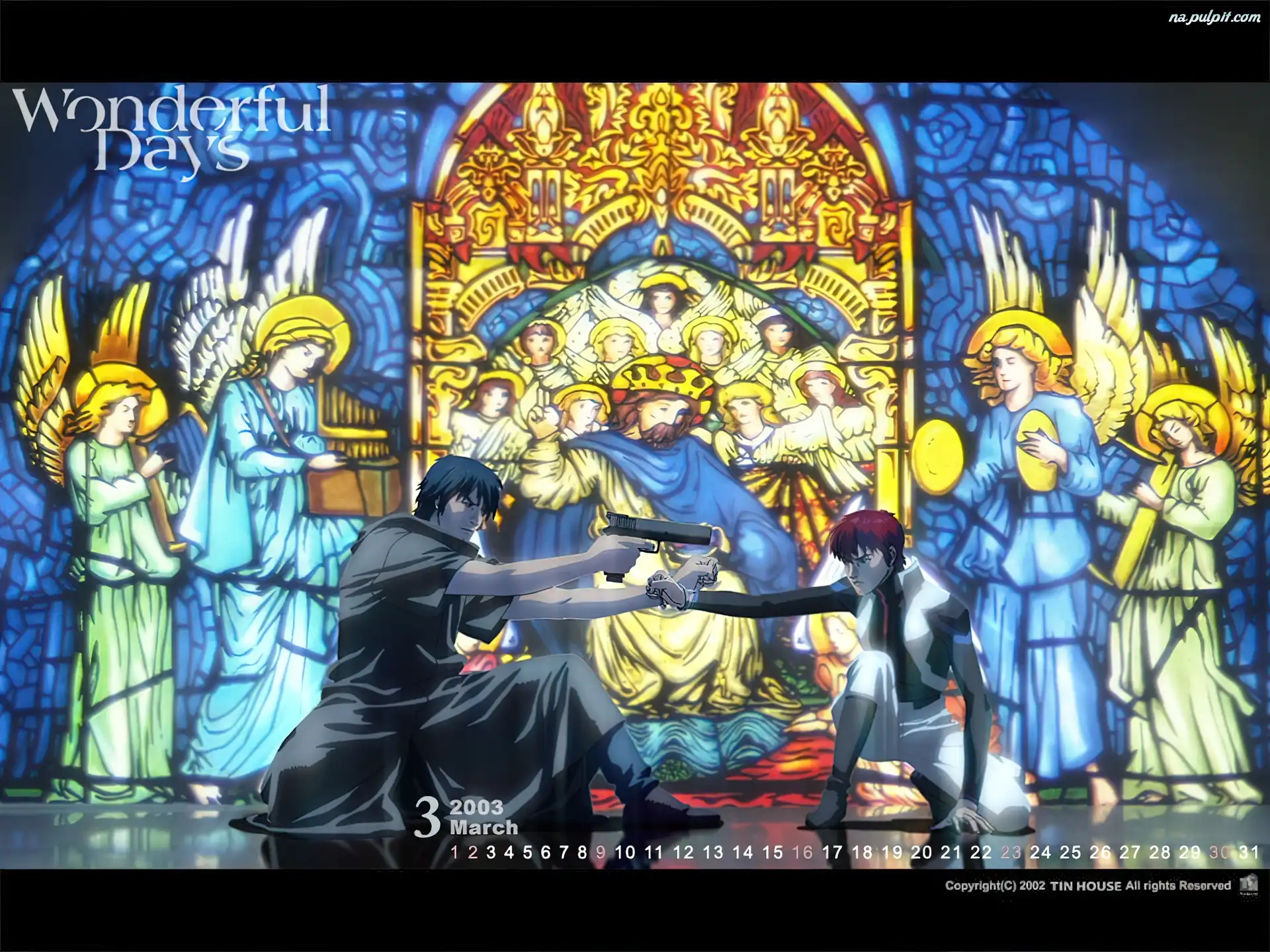 pistolet, witraż, Manga Anime, Wonderful Days, postacie Na Pulpit