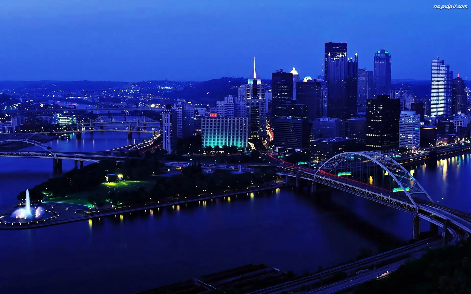 Panorama, Chmur, Rzeka, Ohio, Miasta, Nocą, Mosty, Drapacze, Pittsburgh Na Pulpit