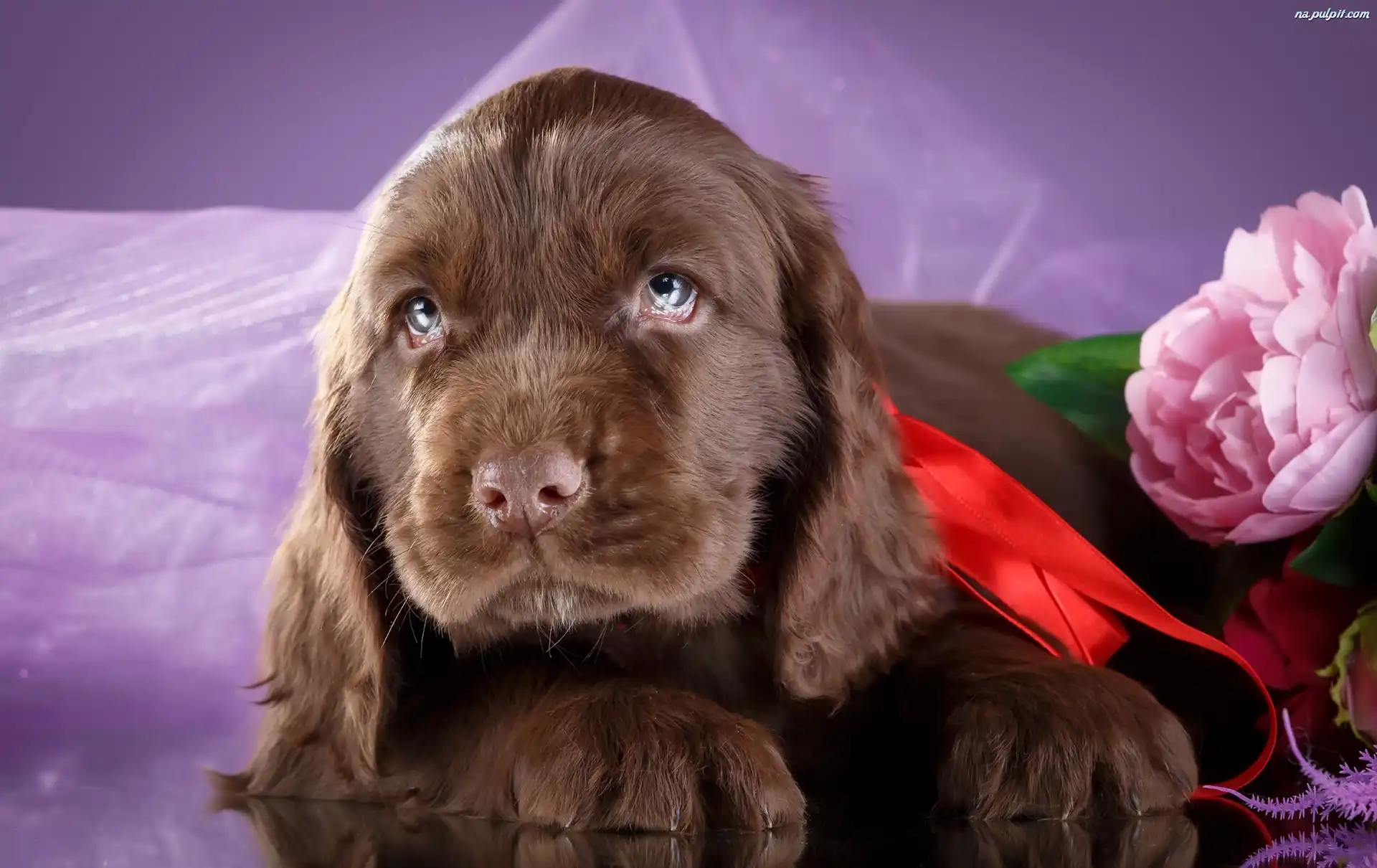 Piwonia, Spaniel, Szczeniak, Kwiat Na Pulpit