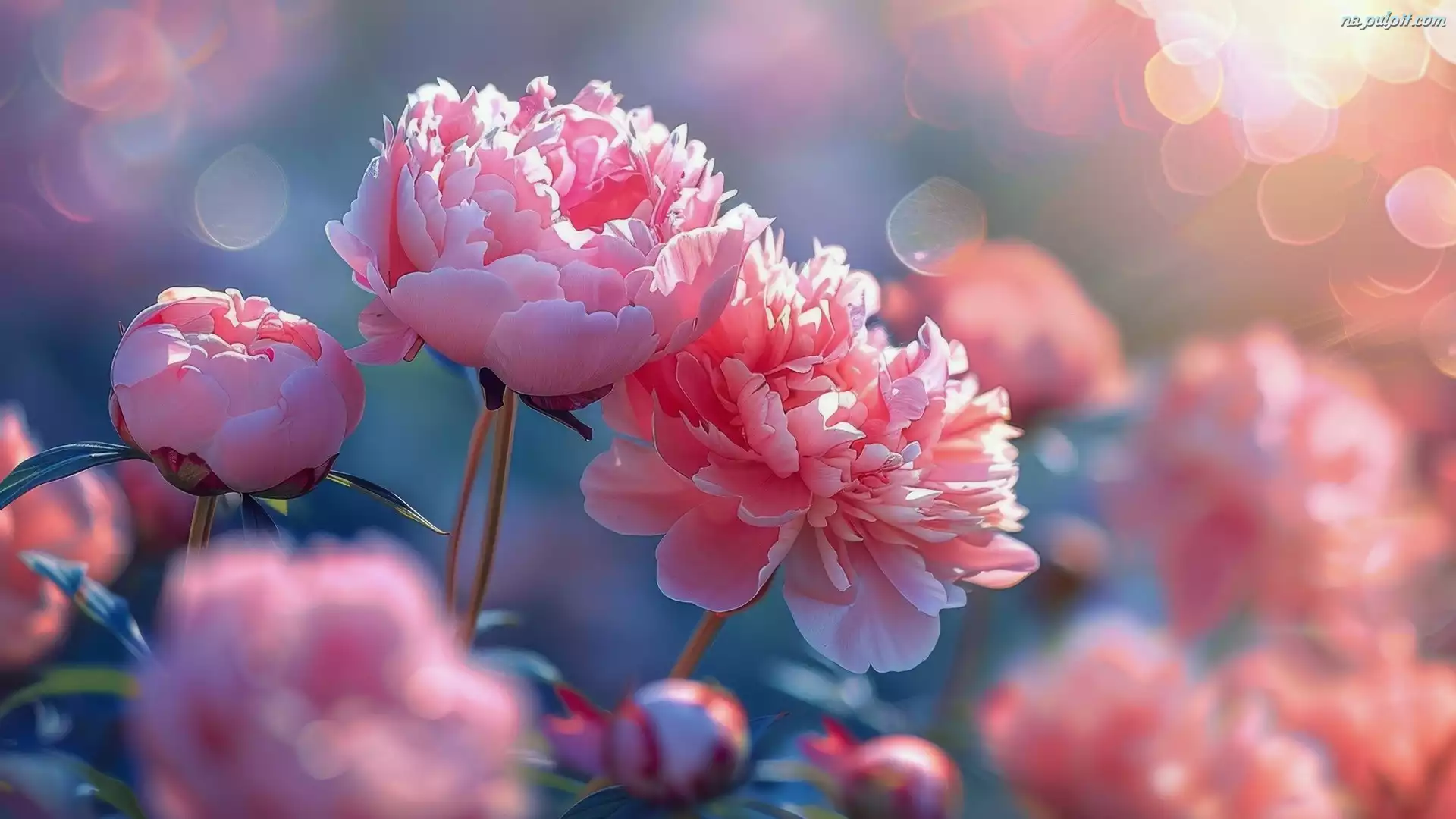 Różowe, Kwiaty, Rozwinięte, Piwonie Na Pulpit