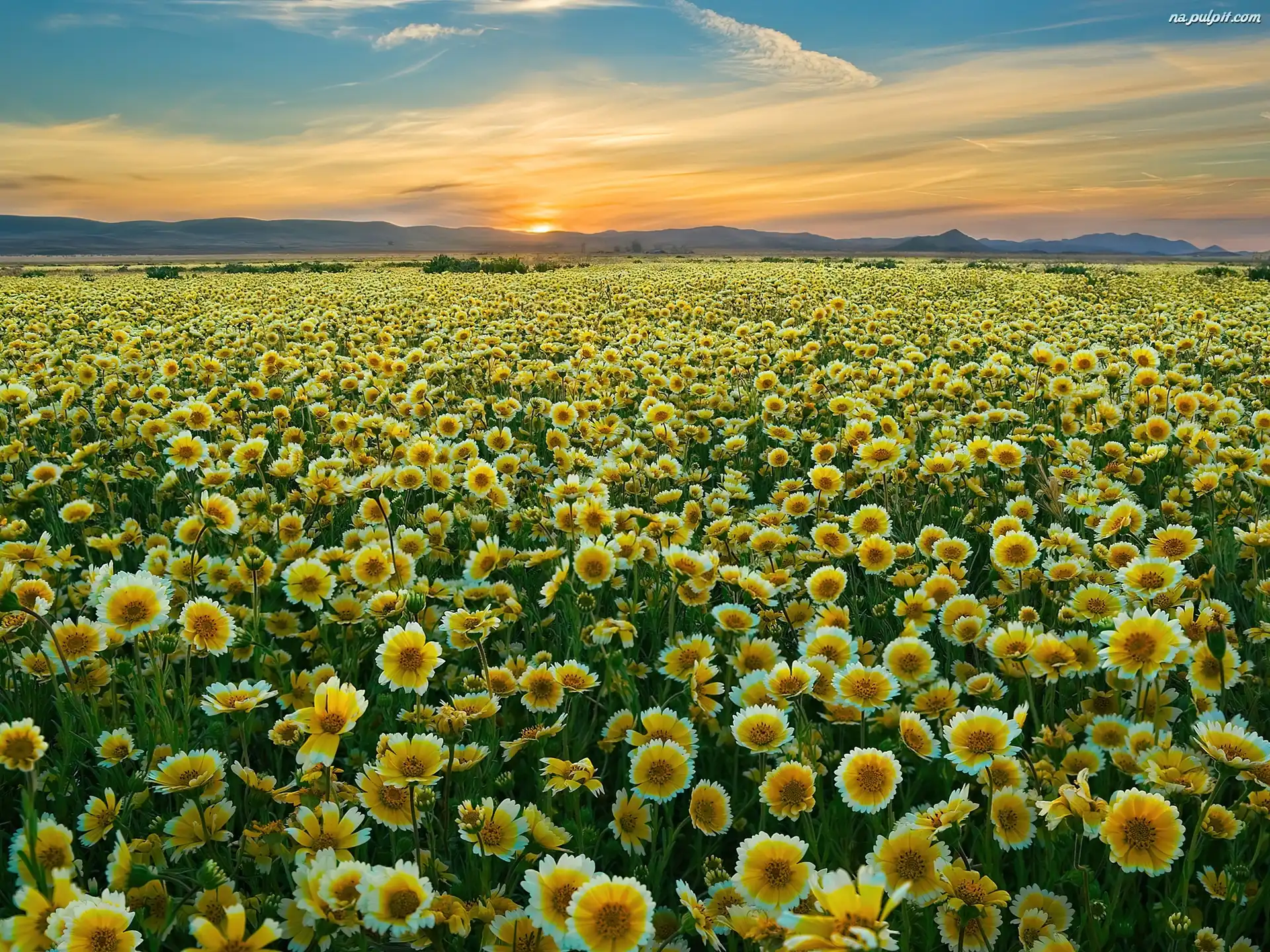 Carrizo Plain National Monument, Zachód, Kwiaty, Polne, Słońca Na Pulpit