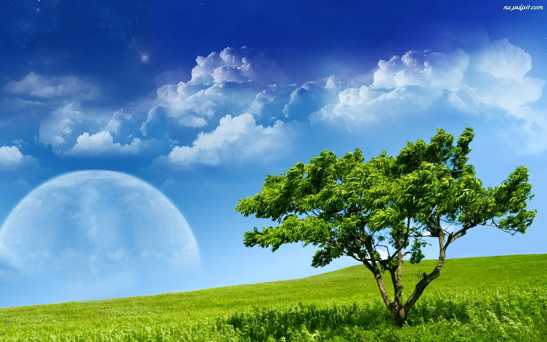 Planeta, Drzewo, Łąka, Chmury Na Pulpit