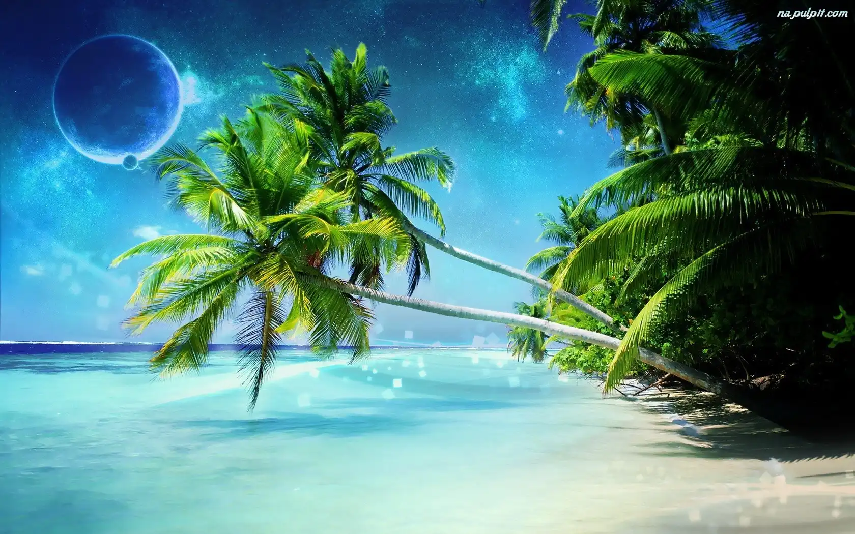Planeta, Plaża, Morze, Palmy Na Pulpit