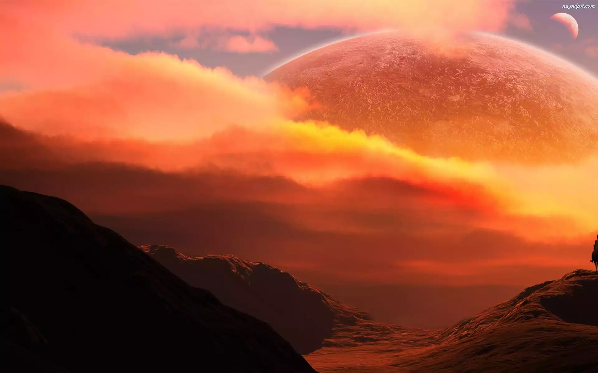 Planeta, Słońca, Zachód, Góry