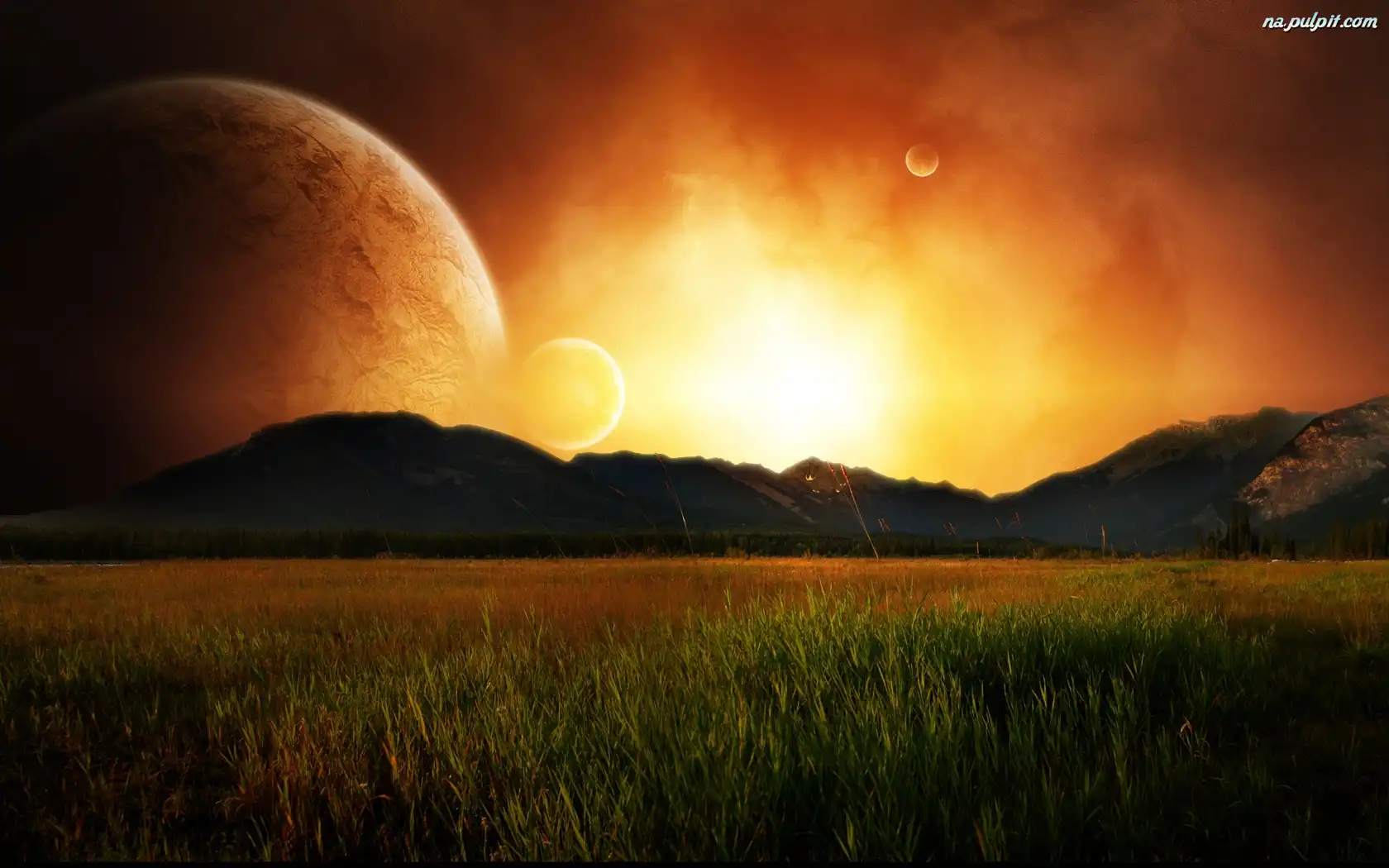 Planety, Słońca, Zachód, Góry Na Pulpit