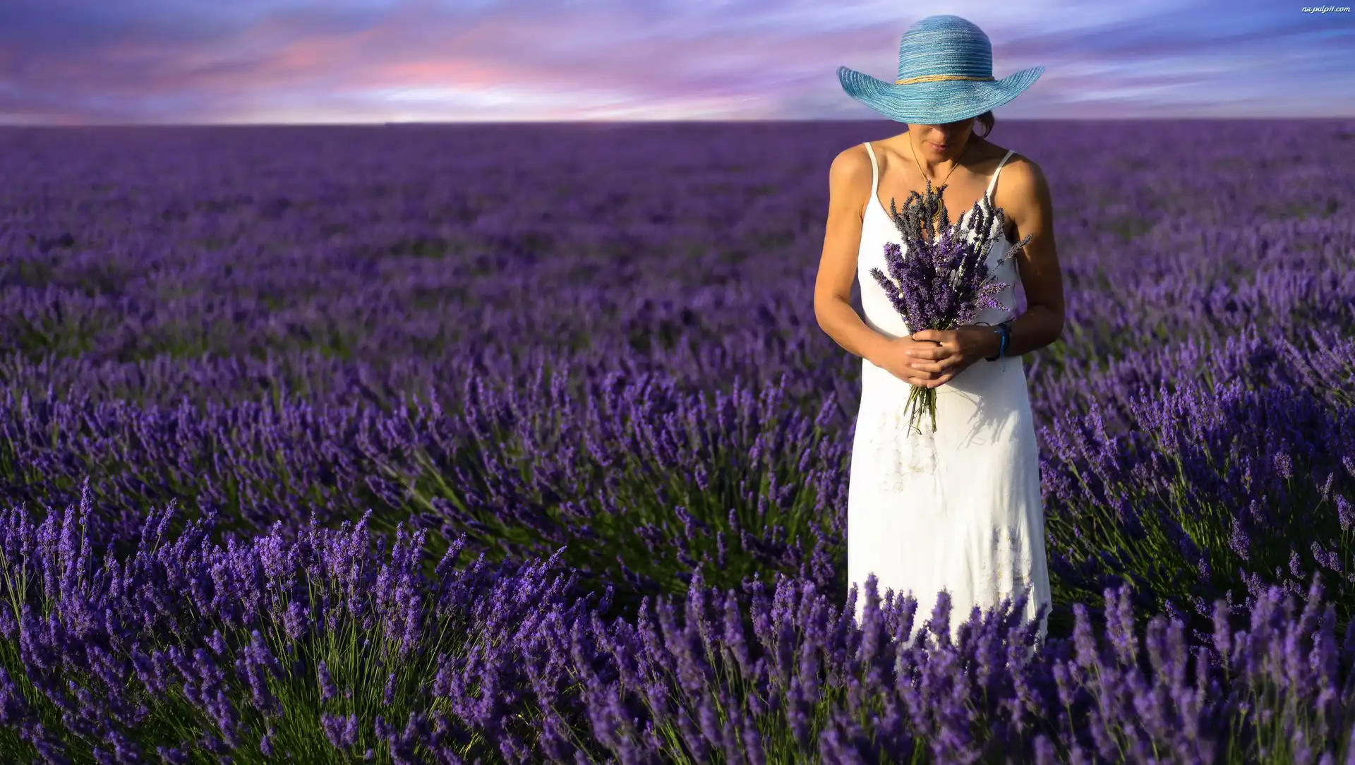 Plantacja, Kapelusz, Kobieta, Lawenda