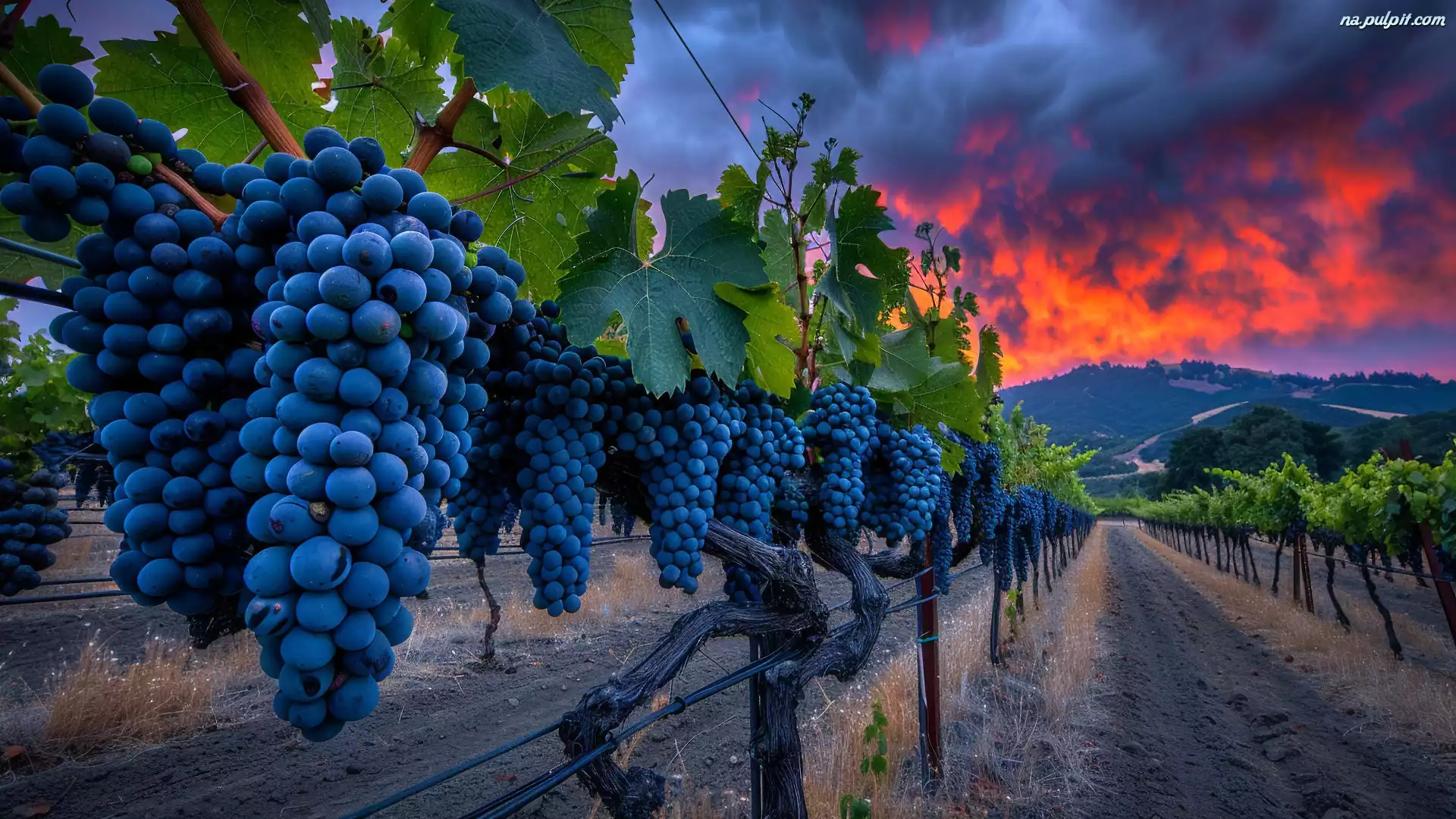 Chmury, Winogrona, Liście, Plantacja, Kiście, Zachód słońca Na Pulpit