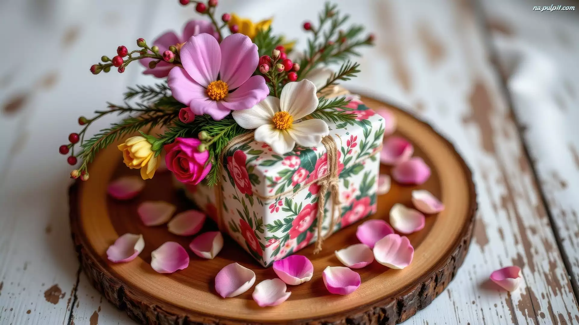 Drewna, Kwiaty, Różowe, Prezent, Kwiatów, Płatki, Kolorowe, Plaster