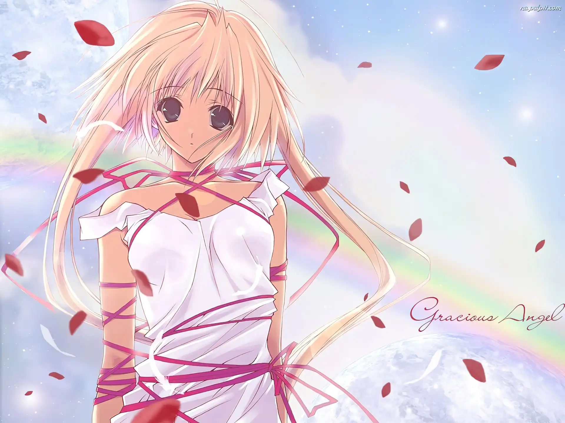 płatki, napisy, tęcza, Carnelian, dziewczyna Na Pulpit