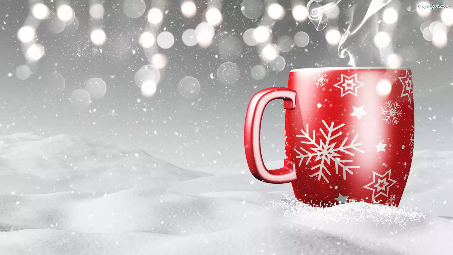 Płatki, Śnieg, Kubek, Czerwony, Zima Na Pulpit