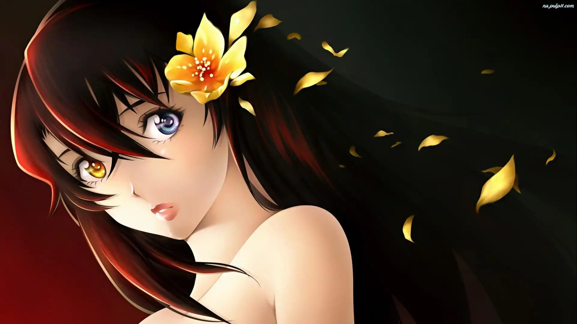 Płatki, We, Kwiat, Dziewczyna, Włosach Na Pulpit