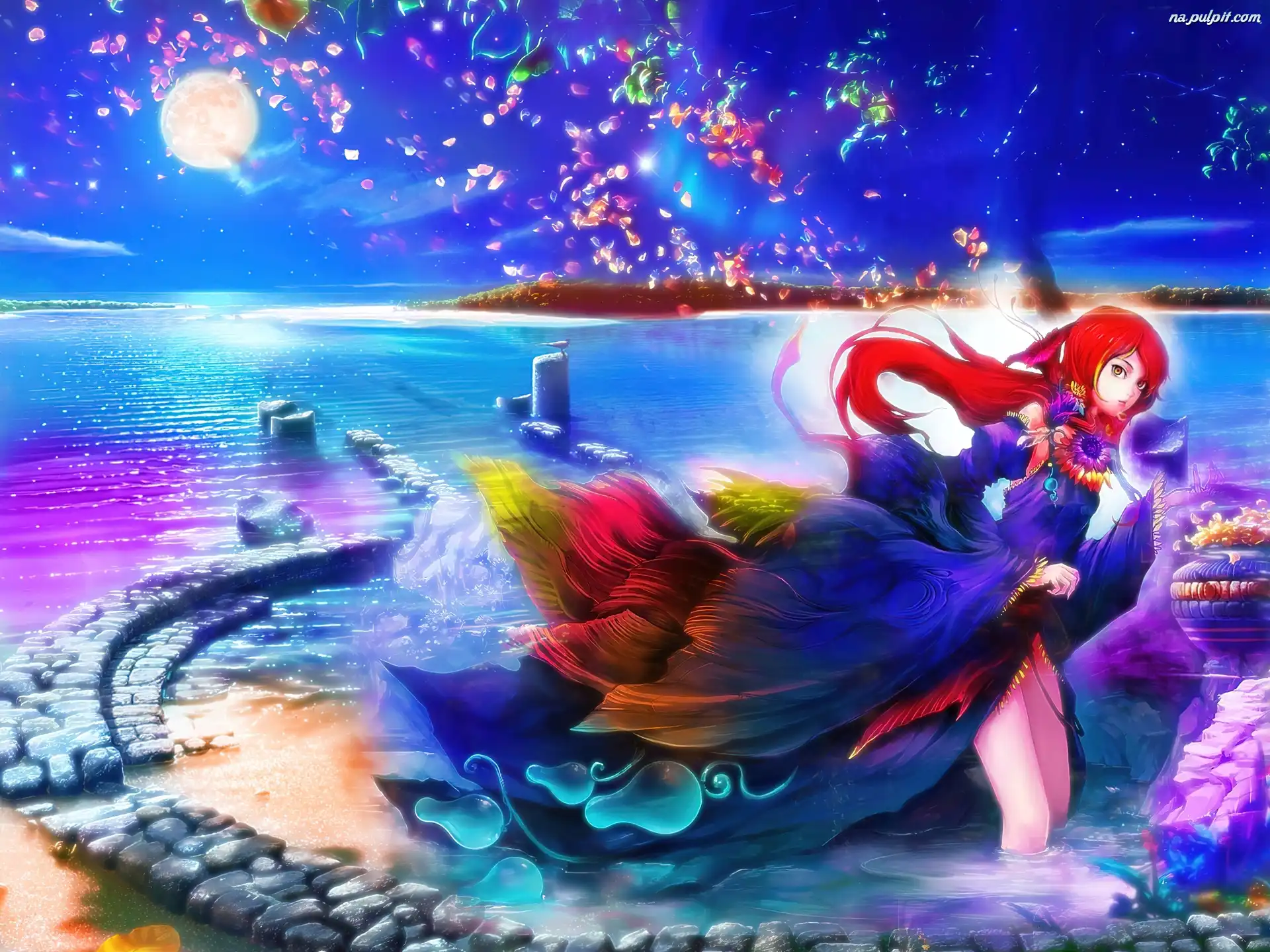 Płatki, Woda, Dziewczyna, Suknia Na Pulpit