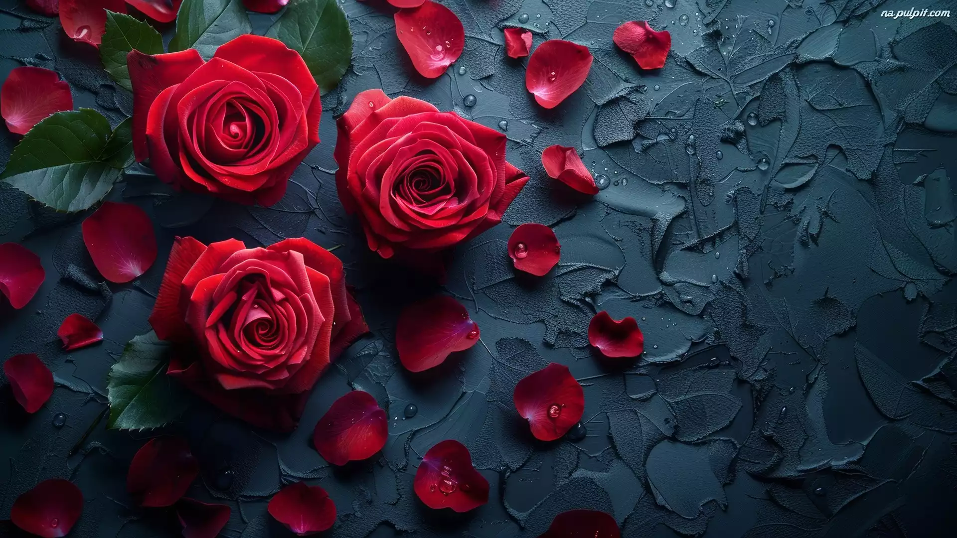 Zielone, Kwiaty, Róże, Płatki, Czerwone, Listki Na Pulpit