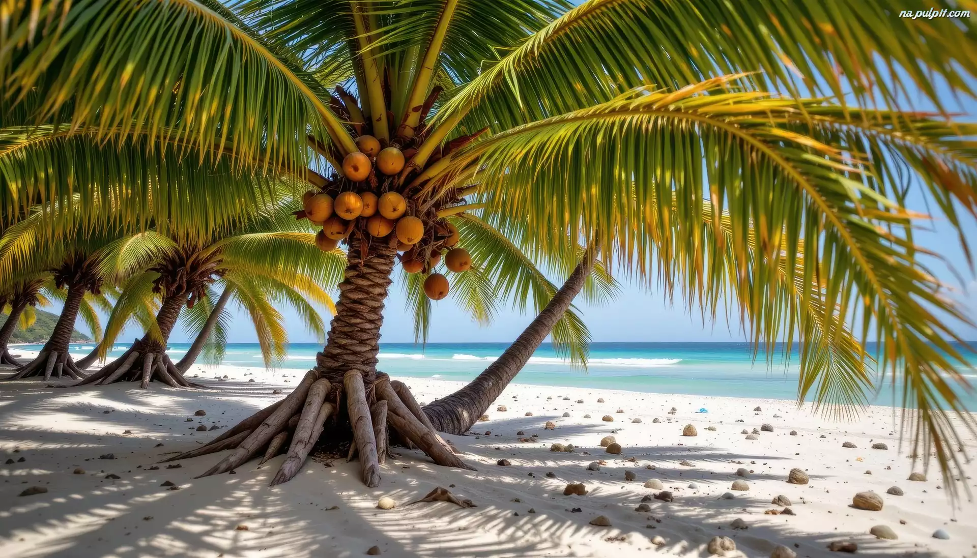 Kokosy, Palma, Morze, Plaża, Kokosowa, AI Na Pulpit