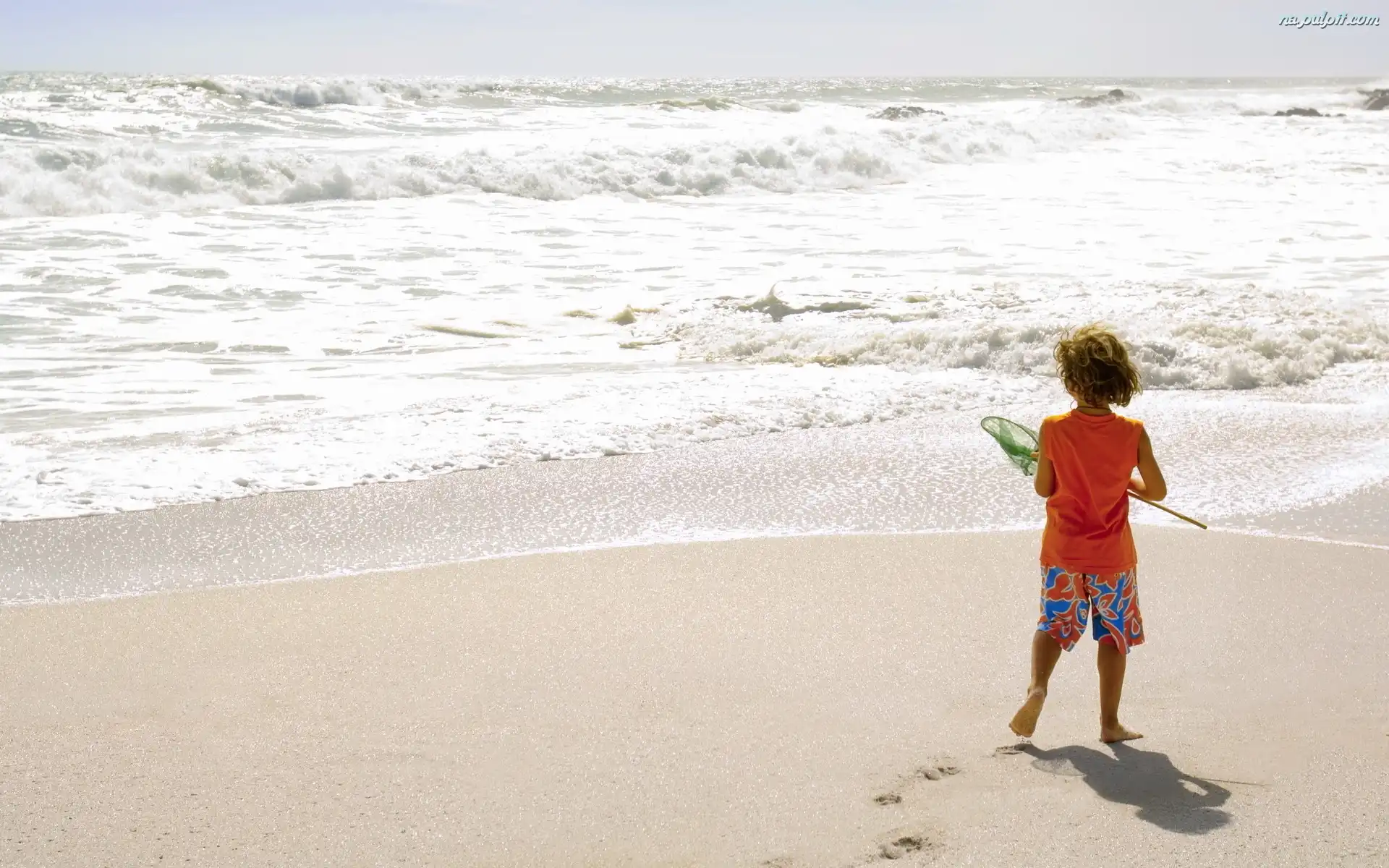 Plaża, Siatka, Chłopak, Morze Na Pulpit
