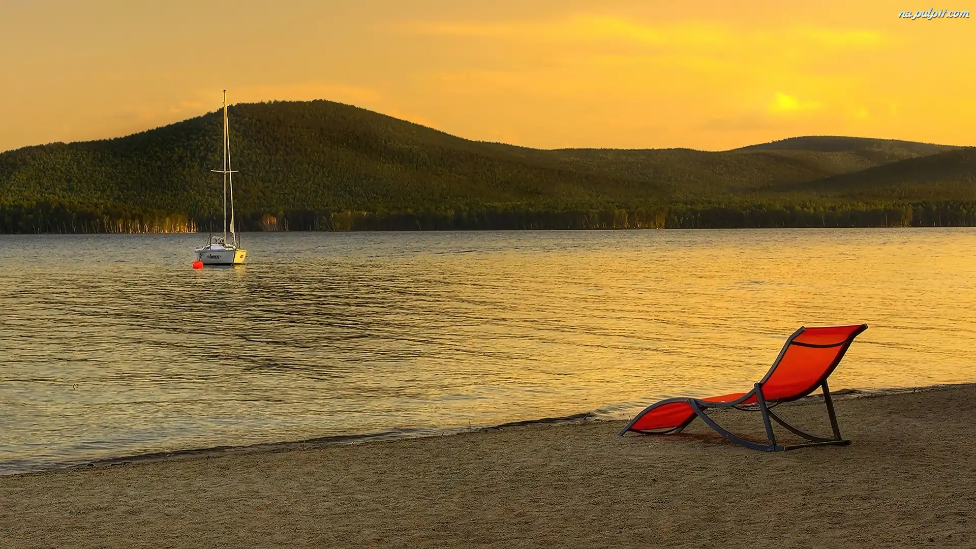 Plaża, Leżak, Czerwony, Jezioro Na Pulpit