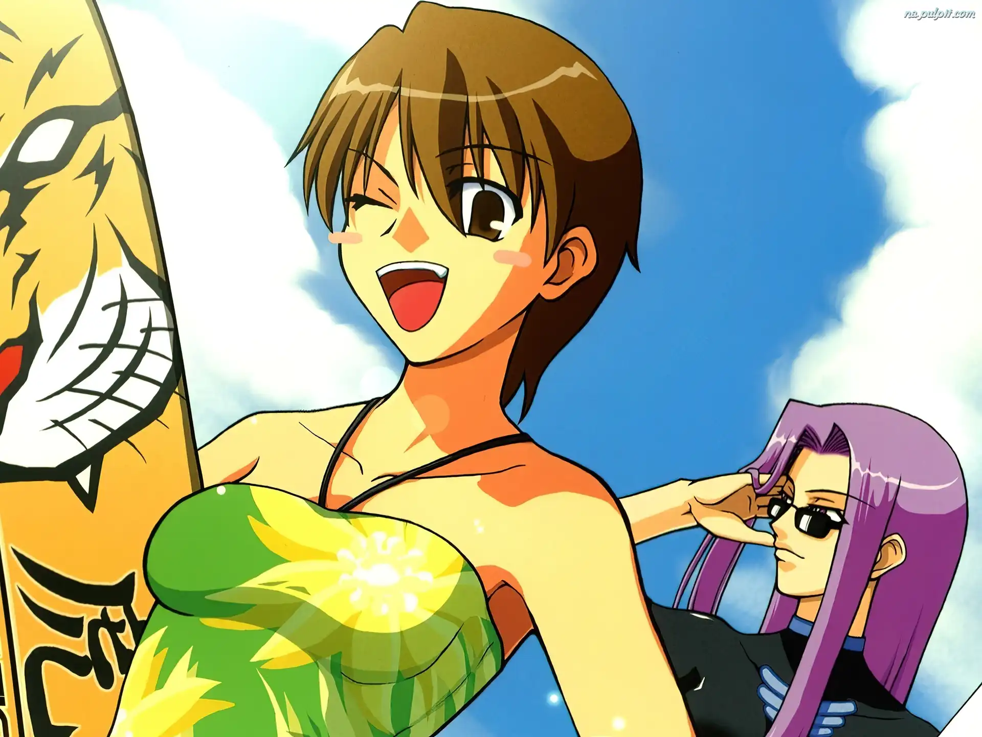 deska, plaża, dziewczyny, Fate Stay Night, surfing Na Pulpit