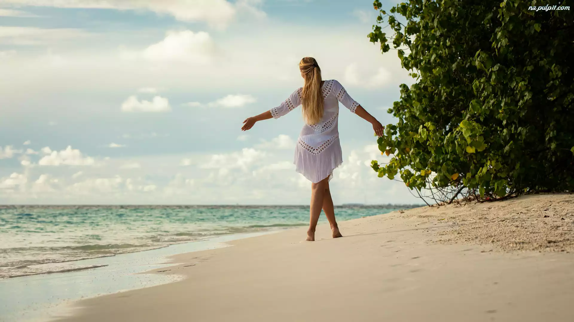 Piasek, Dziewczyna, Sukienka, Plaża, Letnia, Drzewa Na Pulpit