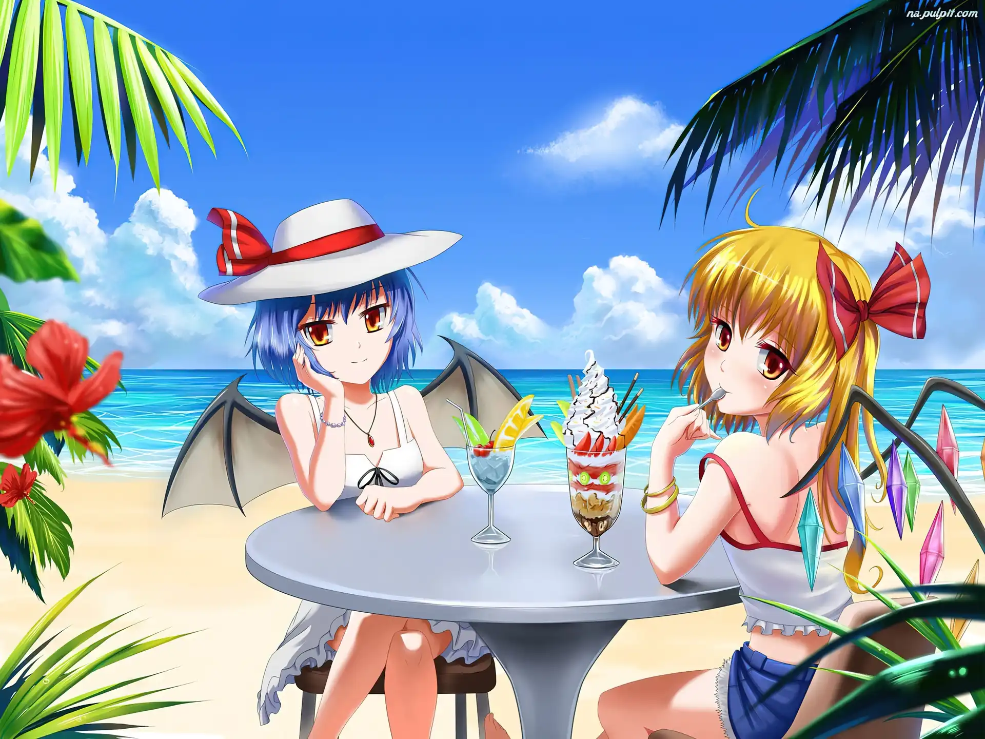 Plaża, Stolik, Dziewczyny, Lody Na Pulpit