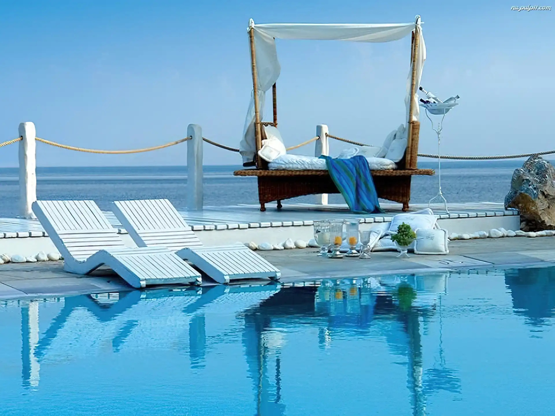Wakacje, Leżaki, Łóżko, Basen