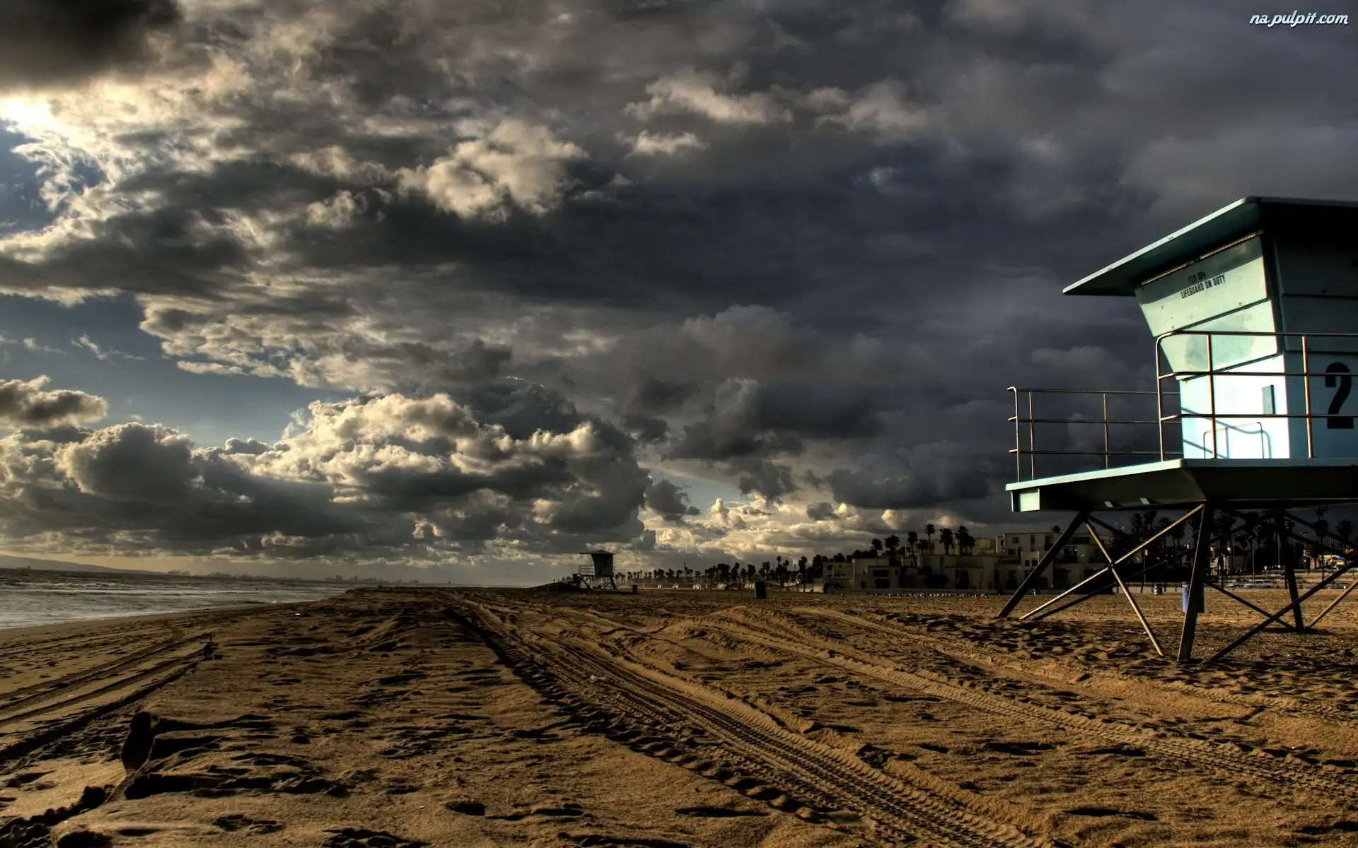Plaża, Budka, Ratownika, Czarne, Marze, Chmury Na Pulpit
