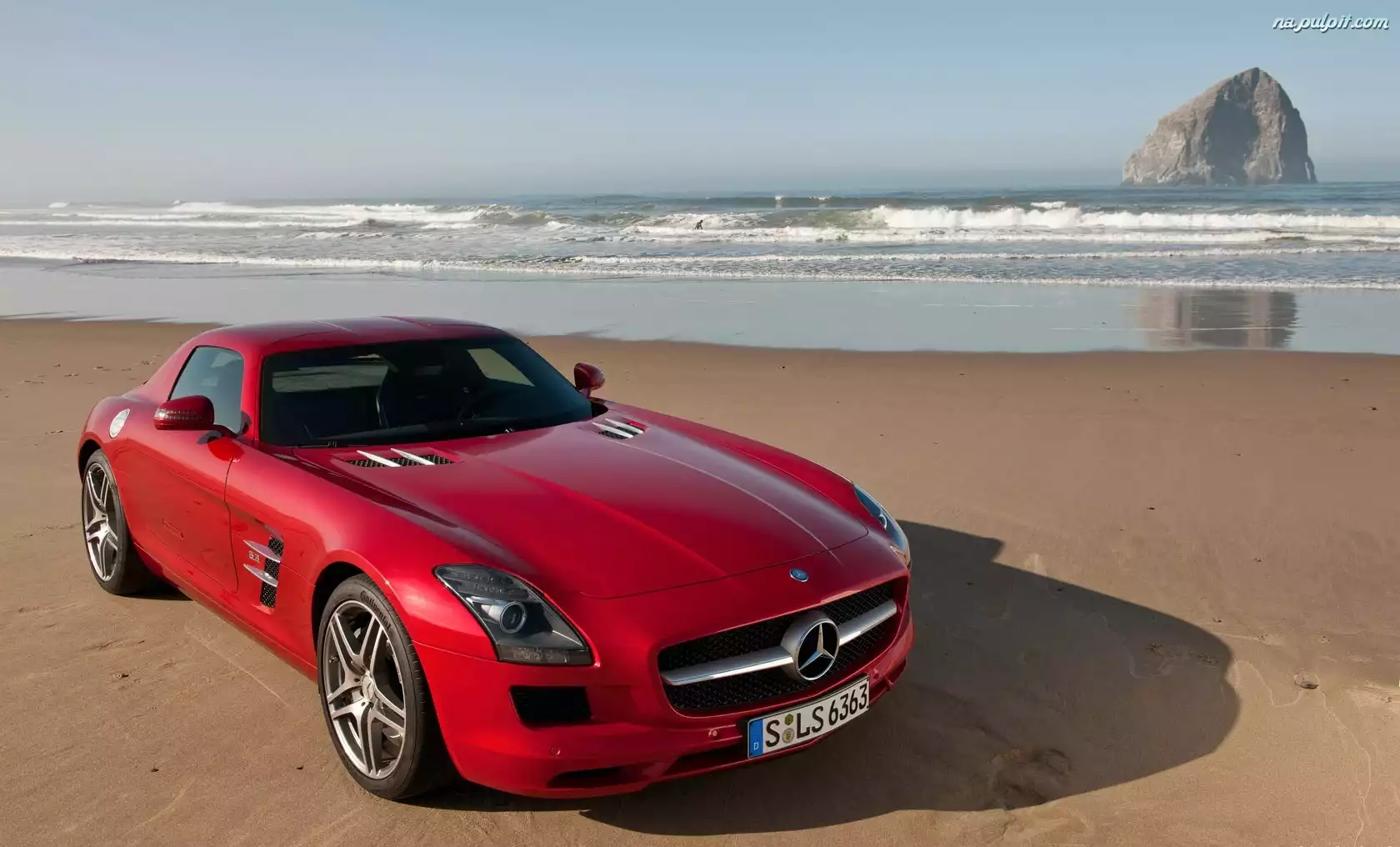 Plaża, Czerwony, Mercedes SLS Na Pulpit