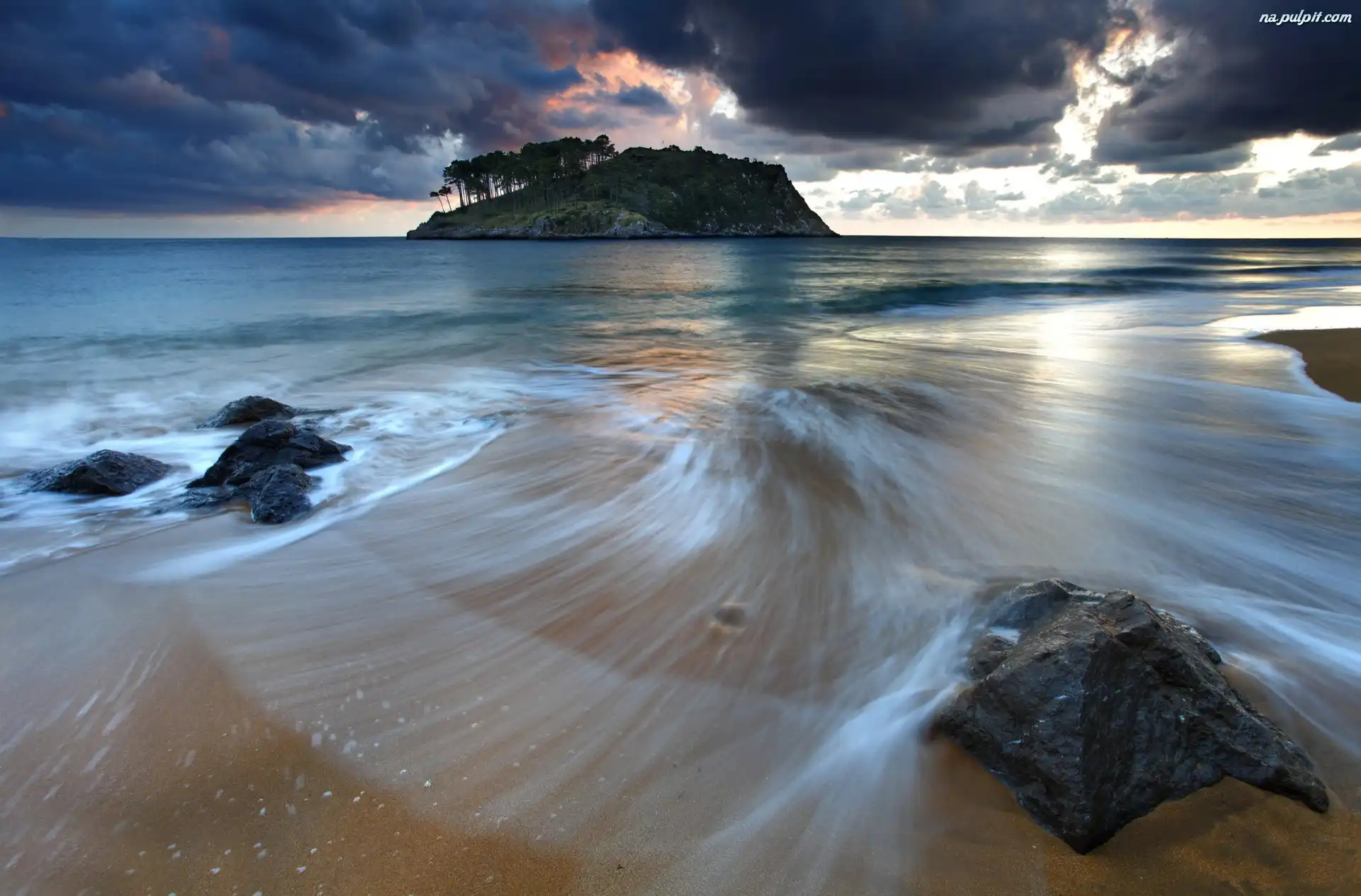 Plaża, Chmury, Morze, Skały Na Pulpit