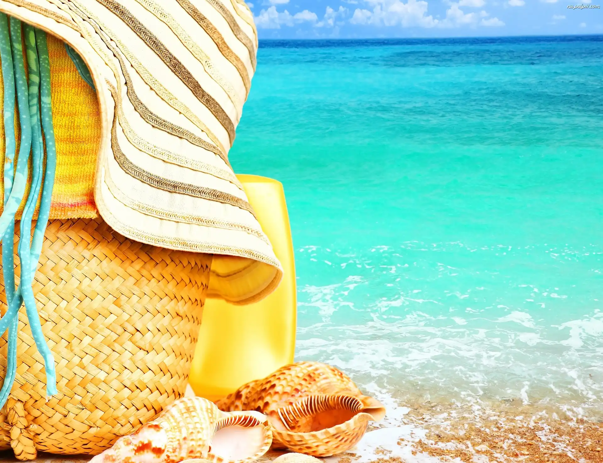 Plaża, Kosz, Muszle, Morze, Kapelusz