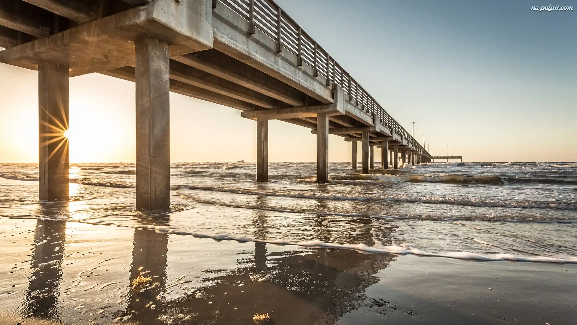 Plaża, Morze, Słońce, Niebo, Molo Na Pulpit