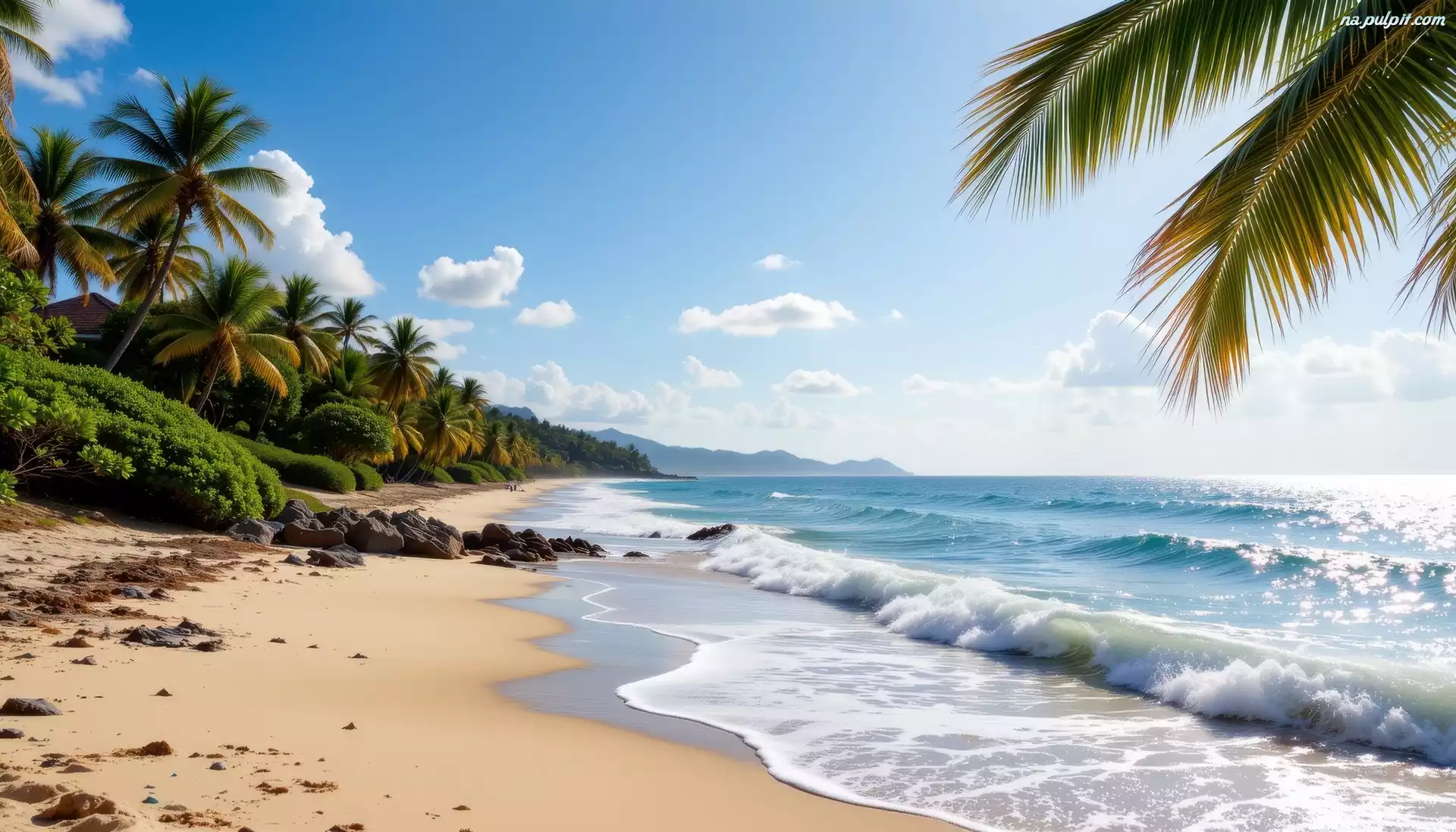Tropiki, Plaża, Palmy, Grafika, Morze Na Pulpit