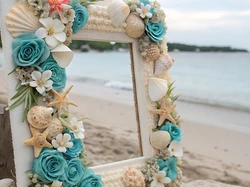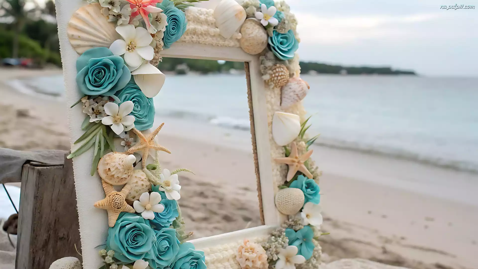 Dekoracja, Muszle, Ramka, Plaża, Morze, Piasek, Róże