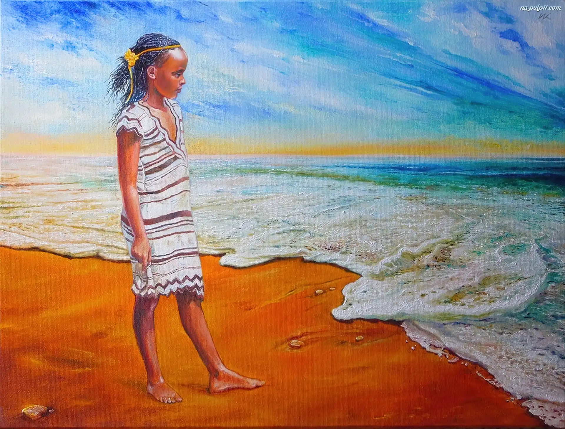 Plaża, Włodzimierz Kukliński, Obrazów, Reprodukcje, Dziewczynka Na Pulpit