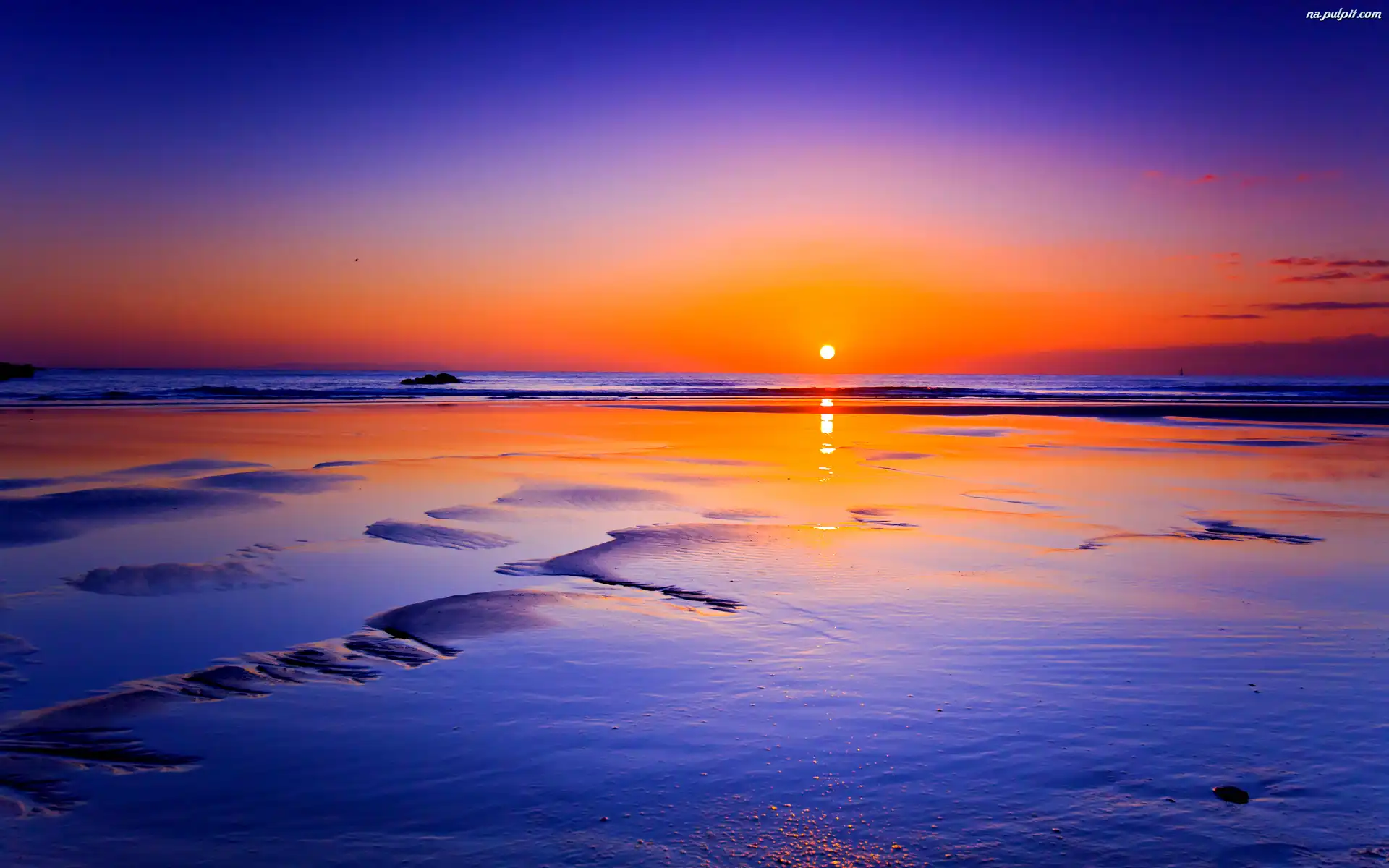Plaża, Horyzont, Zachód słońca, Morze Na Pulpit