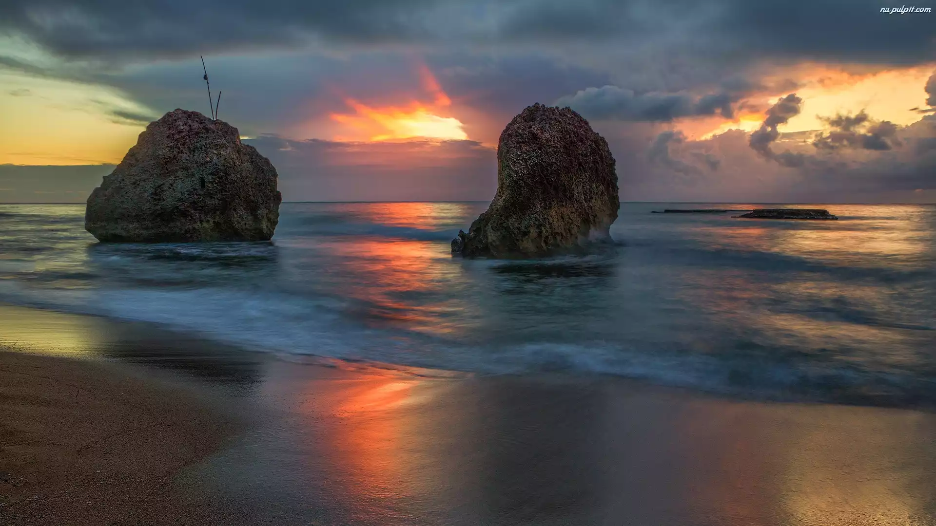 Plaża, Kamienie, Morze, Zachód Słońca Na Pulpit